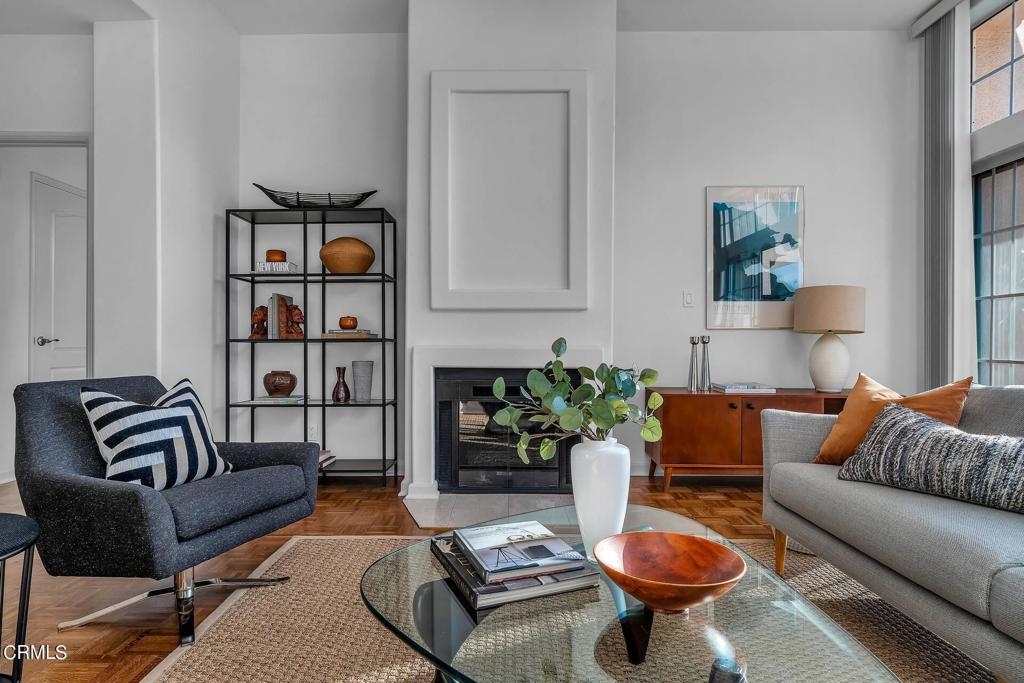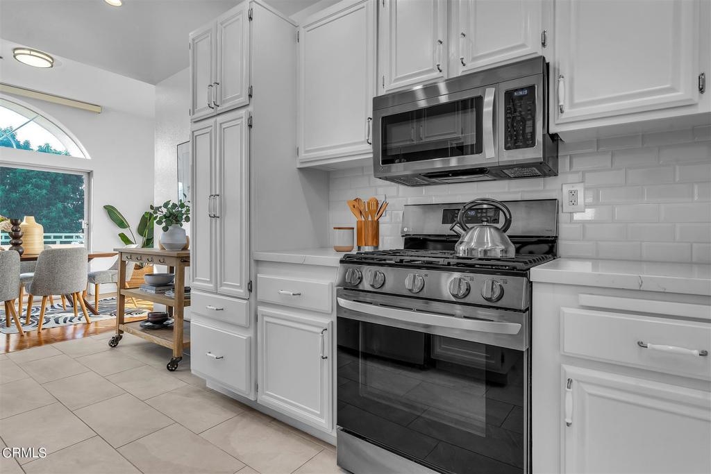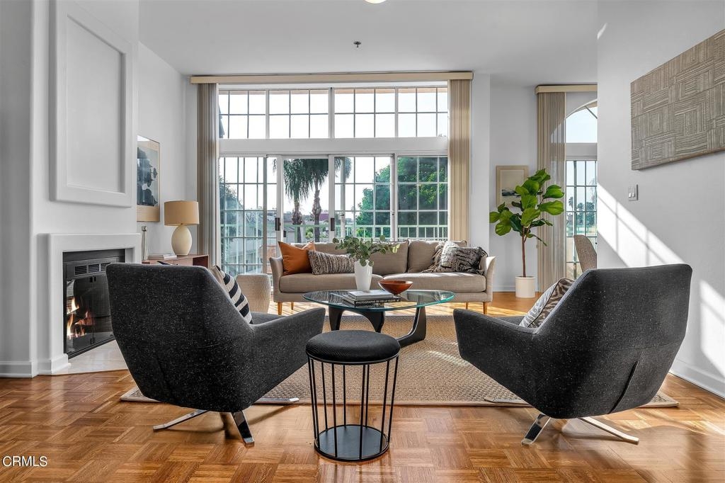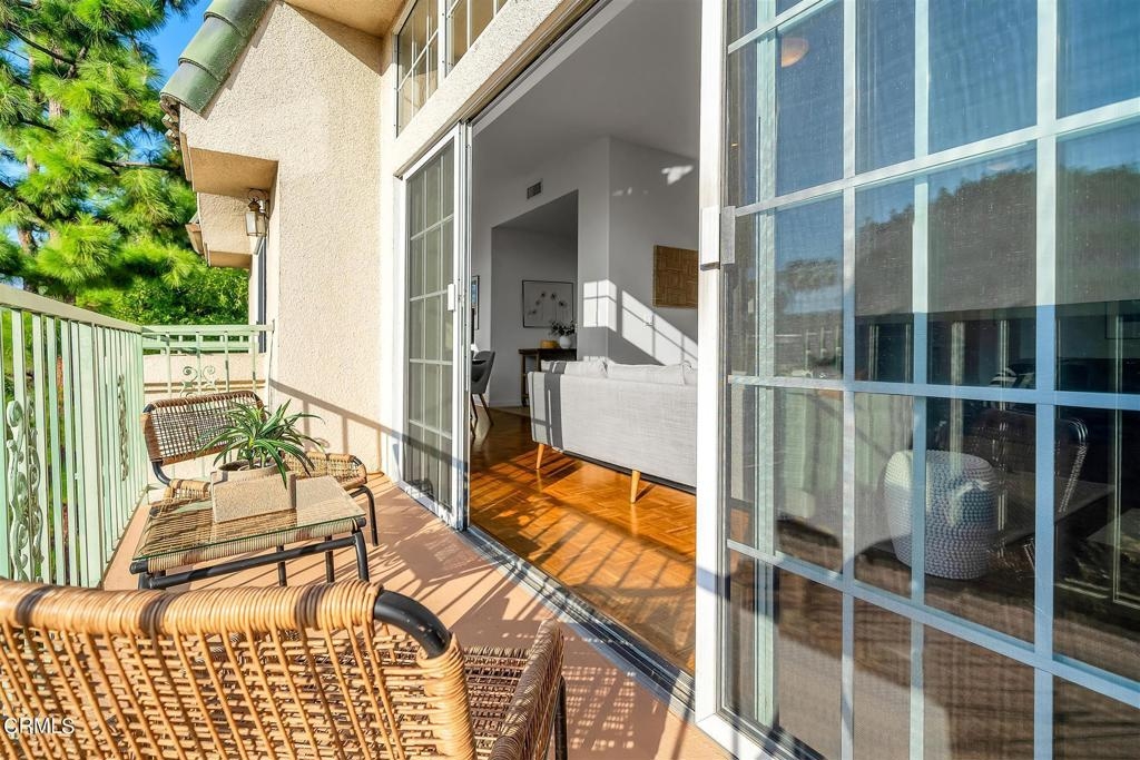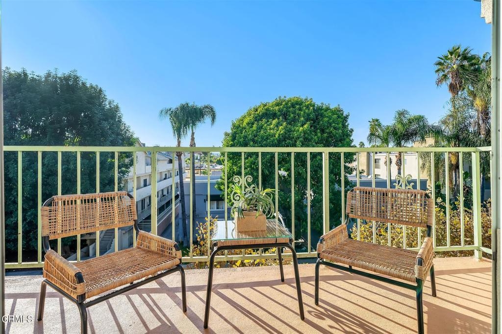 Presenting a luxurious Penthouse facing West sprawling across the entire front of the building where you can enjoy front-row seats to glorious sunsets. There are 3 separate balconies, including one wrapping around the dining area on Northwest corner where you might enjoy your barbeques or morning coffee. The double-door formal entry leads to an open floor plan with living room, dining and den areas basking in sunlight from the 10' high ceilings and floor-to-ceiling windows. The spacious eat-in kitchen was totally remodeled this past year with gorgeous quartz counters, new appliances and a pantry with pull-out drawers. The large primary en suite bedroom is on the Southwest corner with two closets, including a walk-in, plus a bathroom with dual sinks, spa tub and walk-in shower with seamless door. There is a roomy 2nd bedroom en suite with a 3/4 bath and large sliding mirror door closet looking to the South Sherman Oaks Hillside. You will find a guest closet next to a stackable washer dryer closet right across from the guest powder room 1/2 bath. The floors are parquet wood throughout with tile in kitchen and baths. Conveniently located in a great neighborhood nearby Ventura Boulevard, fabulous restaurants, Super Ralph's, Fashion Square and minutes to the 101 and 405 freeways and a quick pivot over the Canyons to the City or UCLA. Unit has a 2-yr old AC; HOA includes water, EQ insurance and 3 guest parking spots inside street level garage.