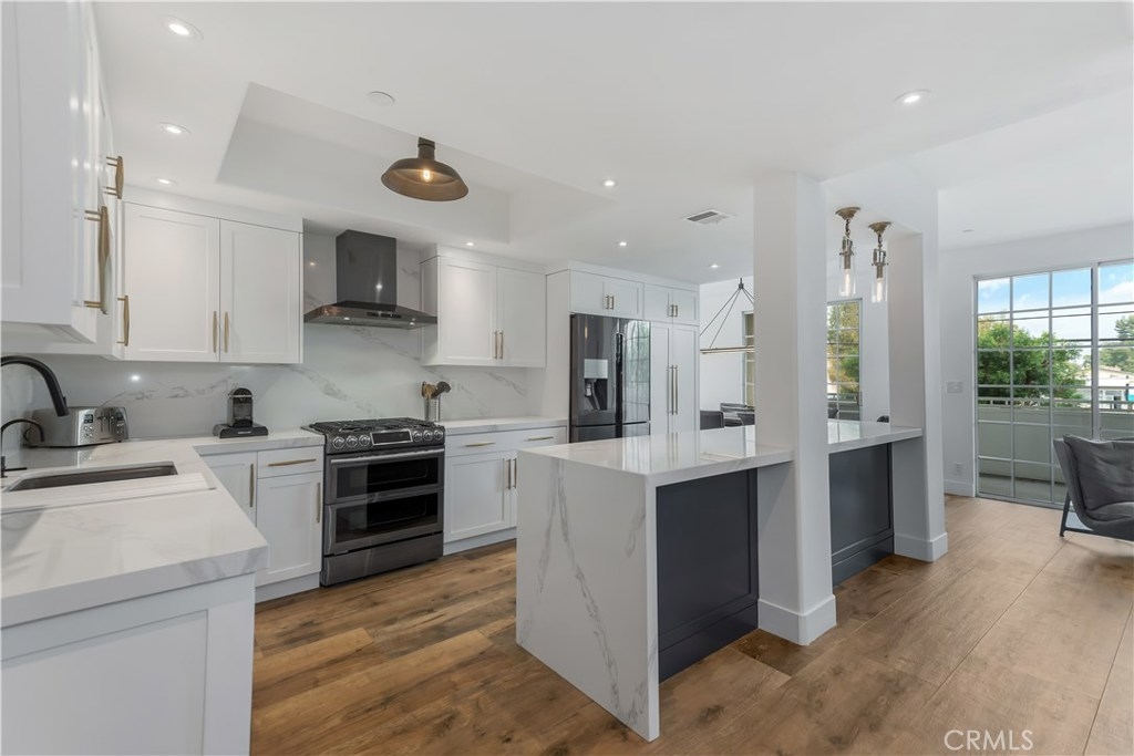 This is truly a unique opportunity to own one of the most luxurious condominiums in Sherman Oaks! This 1512Sqft unit is a back-end unit making it completely private. Offers 2 master bedrooms w/ their own bath, and additional guest bath. The entire unit has been updated in 2020 using the highest quality of materials. A Solid oak front door leads to a breathtaking modern & elegant open floor plan unit. Kitchen is truly a chef’s paradise w/custom designed cabinets, Pental quarts counter tops, high-end stainless-steel appliances. Spacious dining room easily accommodates large group. Entertaining living room offers a romantic linear fireplace & custom design bar finished w/custom cabinets, refrigerator, wine racks. Luxurious master is like a five-star resort, with 2 custom closets, w/1 walk-in. The Master bath is truly remarkable w/floating custom cabinet & 2 separate solid brass black nickel faucets, rain heads & hand –held showers. The Second bedroom has its own private bath w/ satin gold solid brass faucets & shower head. Inside laundry includes brand-new Samsung washer & dryer. Additional features include flush fire sprinklers, custom stained knotty alder doors, recessed lights, & 50 ft. balcony. The entire home has been set up w/Insteon smart switches making the home a smart home! All lights, Nest Thermostat, TV are controlled by your voice commands. The home is strategically located for easy access to 101 & 405 freeways & close to restaurants, bars, grocery & retail stores.