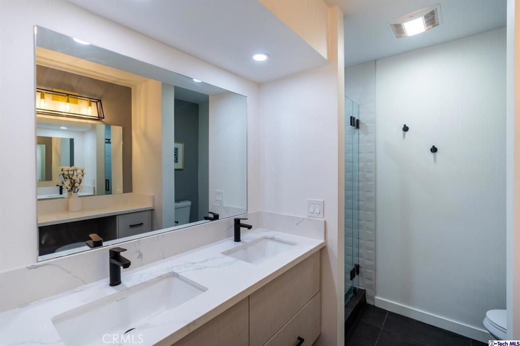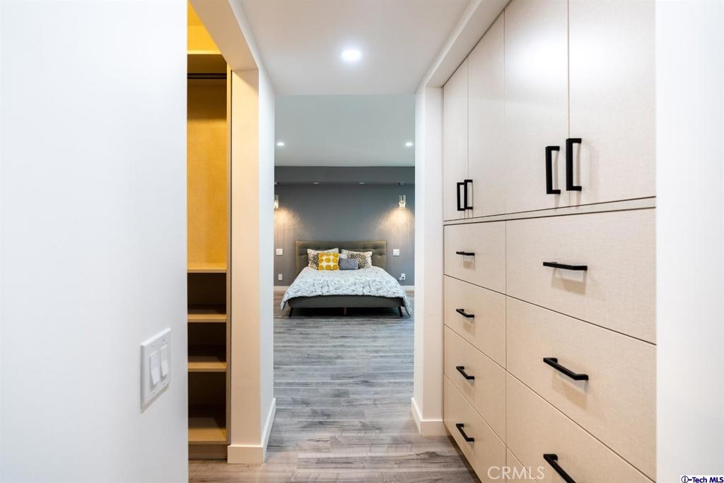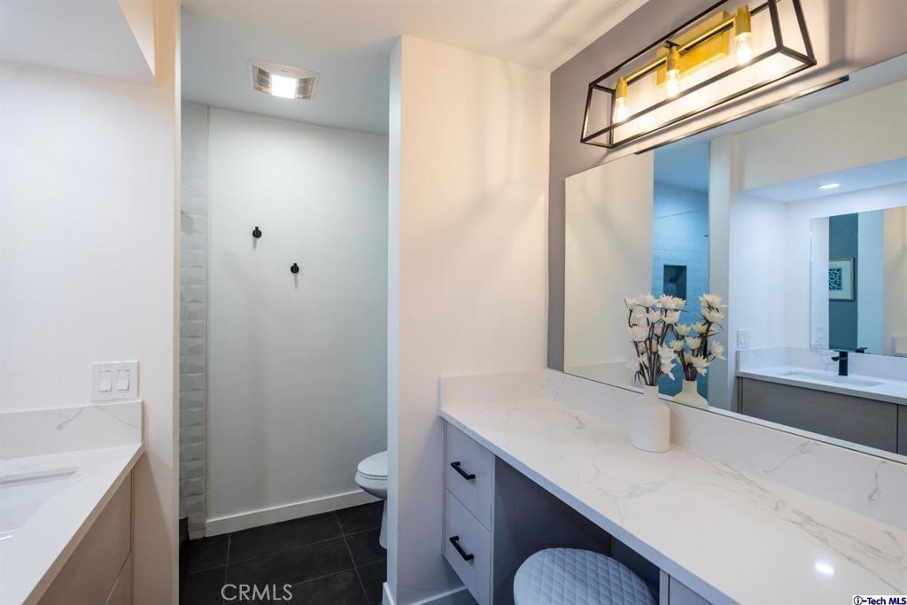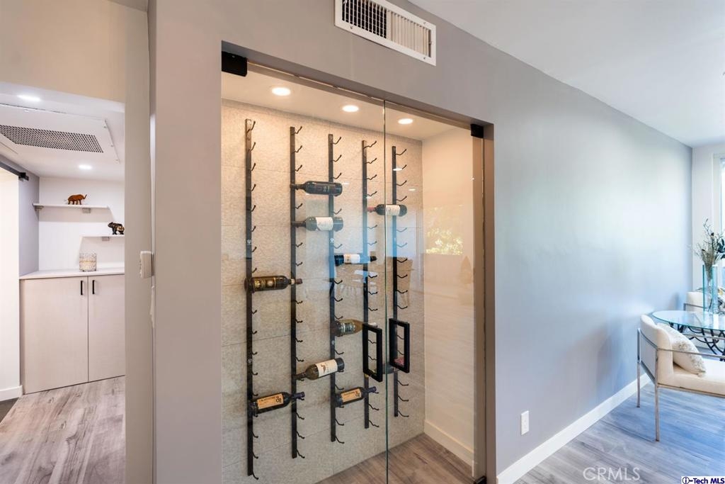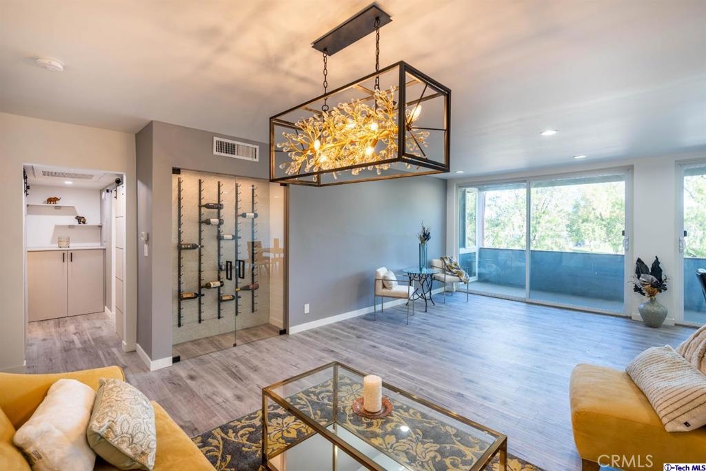 Newly remodeled original Milan Consi design condominium in the heart of highly desired Sherman Oaks. Just a block away from the Sherman Oaks fashion square, popular dinning, and entertainment. High end finishes include, designer chandelier, exquisite wine lovers display rack wall, open concept living and dining area, custom kitchen and bathroom cabinets, ample storage and walk in closet in the beautiful master bedroom. Barn doors and recessed lighting all throughout the unit. Other beautiful features include, new flooring, new bathroom including designer shower tile, Quartz counters throughout the unit, new water heater, new toilet, new sinks, new appliances including a GE white electric cooktop, new island range hood, new fixtures throughout, and much more to be seen and admired in person.
