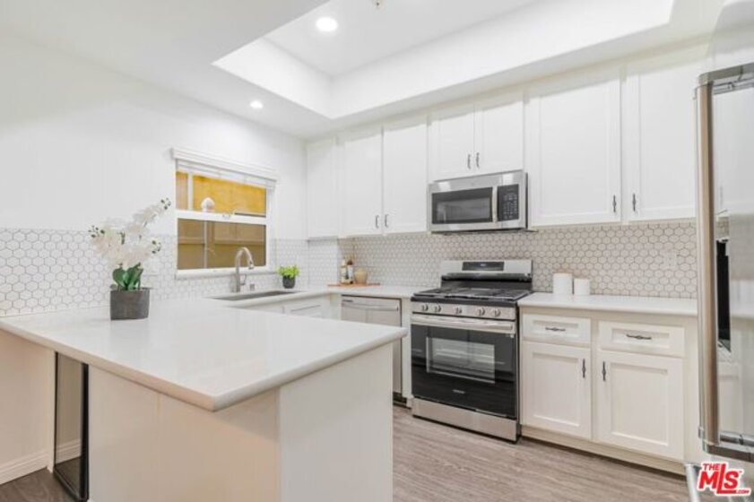 Welcome to this spacious end unit townhome located in the heart of Sherman Oaks, offering nearly 1900 square feet of well designed living space. This rare residence features 3 bedrooms, 2 full bathrooms, and 2 half bathrooms, providing a flexible layout ideal for modern living.The interior offers generous living and dining areas with recessed lighting and a gas fireplace that adds warmth and comfort. The remodeled kitchen includes updated finishes and flows seamlessly into the main living space, making it well suited for everyday living and entertaining. New flooring has been installed on the stairs and upper level bedrooms, enhancing the homes clean and contemporary feel.A large bonus room (approx 350 sq/ft) with an attached bathroom provides excellent flexibility and may be used as a home office, gym, or additional living area. Additional interior features include in unit laundry, an in unit storage room, and smart home upgrades such as a Nest thermostat and doorbell camera.Outdoor highlights include a private rooftop patio ideal for relaxing or entertaining, along with a well maintained community courtyard and designated pet area. The attached 2 car garage offers convenient direct access.Located near shopping, dining, and major access routes including the 405 and 101 freeways, this upgraded Sherman Oaks townhome offers comfort, functionality, and a desirable location ready for its next owner.
