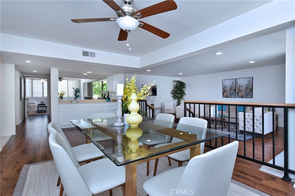PRICE REDUCTION!! Bright and spacious 2 bedroom, 2 bath condominium in the heart of Sherman Oaks, walking distance to Sherman Oaks Village, Restaurants, and shops located in the beautiful tree-lined street two blocks SOUTH of Ventura Blvd. This beautiful corner unit boasts a formal entry, and an elegant sunken living room with a patio facing the courtyard and the pool with lots of natural lights, adjacent to the large formal dining room and a large size kitchen. The bathrooms are newly remodeled, and the master suite has 2 walking walk-in closets with a luxurious updated bath & shower with double sinks. Building amenities include a pool, sauna, gym, large rec room, community patio, conference room, and lobby. There are 2 assigned parking spaces. Easy access to the 101, & 405 freeway.