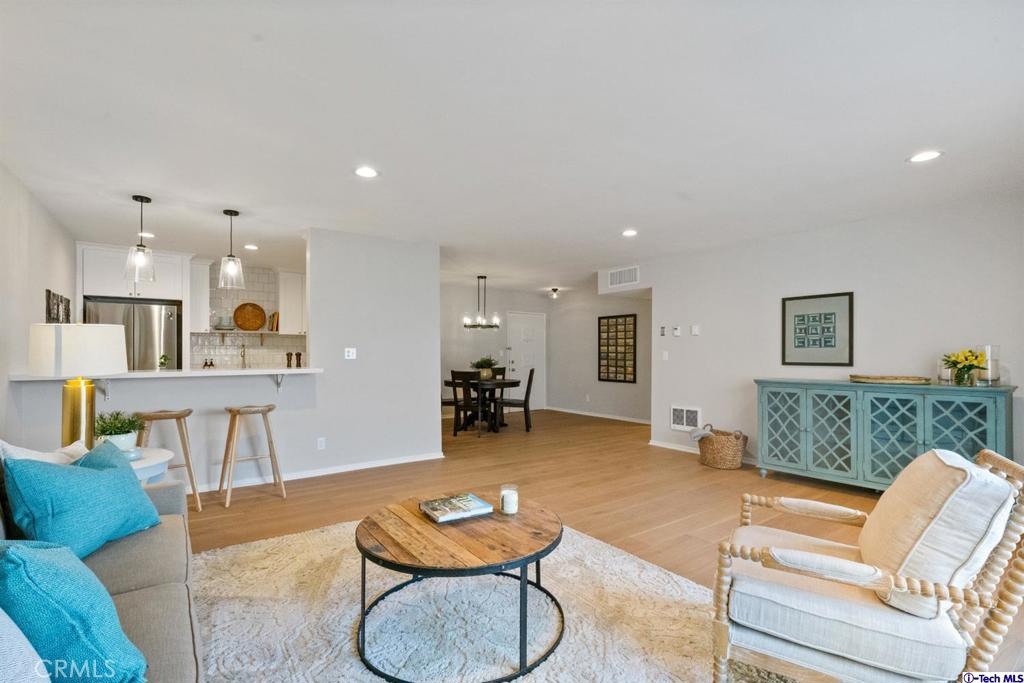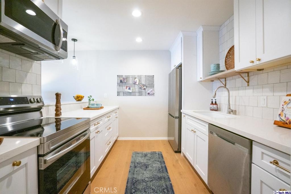 Welcome to this completely renovated 2 BR, 2 BA one level condo. The condo features hardwood flooring, recessed lighting, lots of windows and a balcony. This open floor plan has a state of the art kitchen with stainless appliances, stone counters, and beautiful tile. The master comes with an en-suite bathroom with new vanity, tile shower and floors and laundry hook ups in large master closet. The 2nd bedroom is small but would make a great office, guest room, kids room. Title shows this as a 1 bedroom with den but den has been converted to a bedroom with a closet. This is a very nice community with a newly remodeled lobby, quiet courtyard, pool and parking garage in a perfect location. It is less than a block from the new Whole Foods market and a very short distance to Sherman Oaks Galleria, Trader Joes and Ventura Blvd. with tons of restaurants and nightlife.