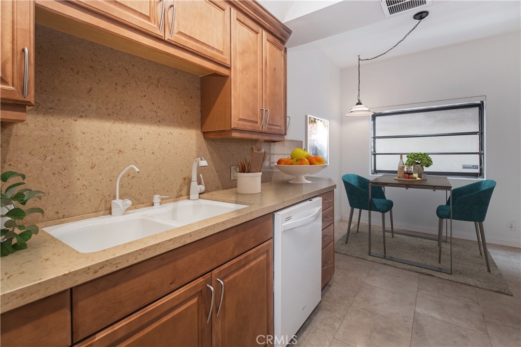 Elegantly remodeled large, single level two bedroom/two bathroom 1599sq. ft. corner unit in well maintained security building just north of Ventura Blvd. with Pool and Spa. Spacious foyer welcomes you into this light and airy condo with large windows and high ceilings. Remodeled Kitchen with in-sink filtered water system, eat-in area with bay window allowing light to stream in. Separate formal dining room, and large open living room with fireplace and high ceilings. Huge primary en-suite bedroom with large walk-in closet, sliding doors to balcony, and remodeled bathroom with separate stand alone shower and soaking tub. Second bedroom also includes another large walk-in closet. Second bathroom includes tub and shower and has been remodeled as well. HOA's include EQ Insurance, water, trash, sewer, pool/spa, cleaning crew, gardener, and security entry. Gated garage includes two tandem parking spots and an additional storage unit. Unit is also wired with a security system. Walking distance to Blvd, shops, restaurants. Easy access to Westside, Studios, Canyons, and Freeways. Beautiful, large condo in a great building! Property is virtually staged