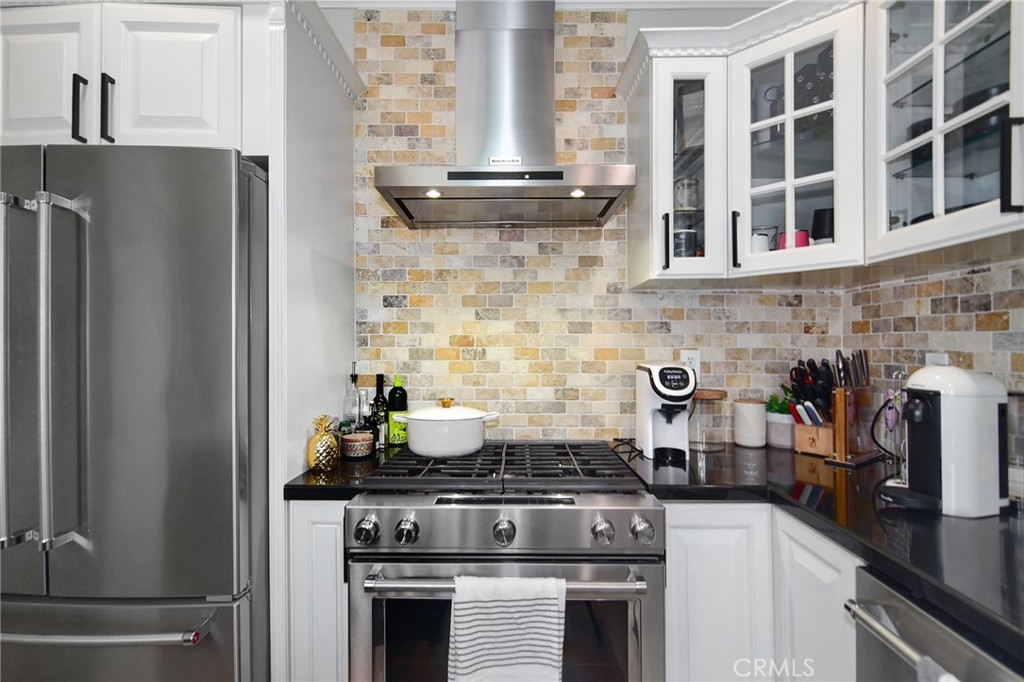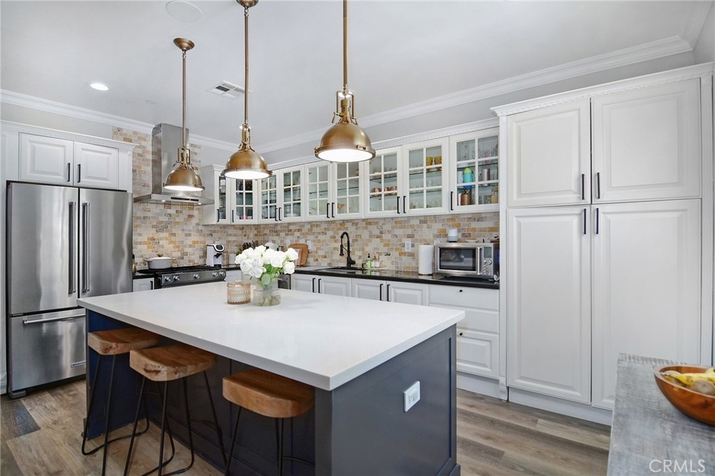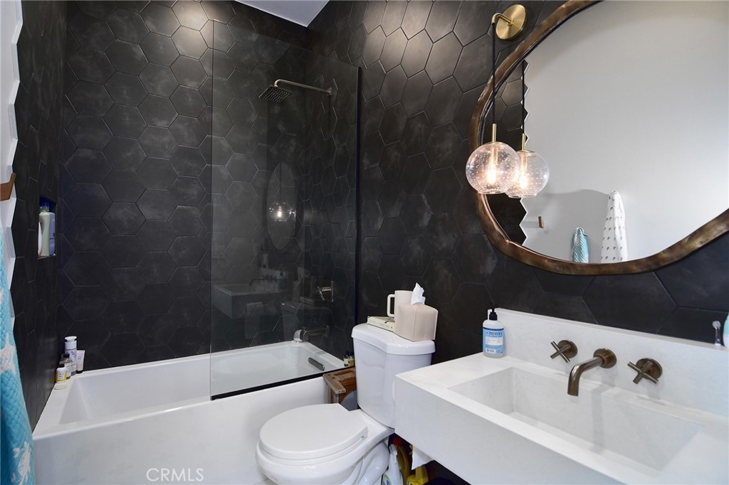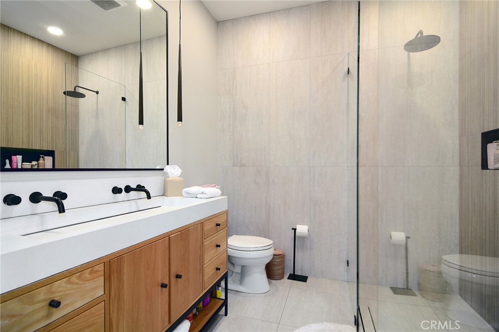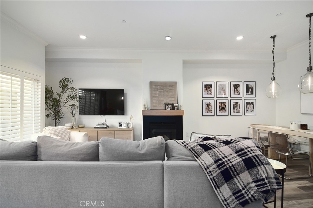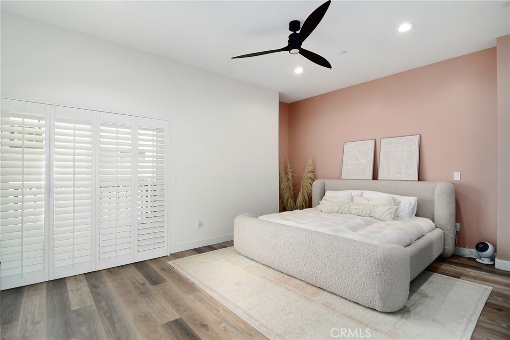 Looking to make a dazzling upgrade to your current living situation? You've hit the jackpot w/this rear of the complex located Sherman Falls townhome! 2 BEDROOMS + BONUS ROOM. Walk in & you're greeted by high ceilings, upgraded wide plank Oak style flooring, recessed LED lighting & a dazzling gas fireplace. A mesmerizing kitchen affords you a grand sized center-island w/QUARTZ counters, newer high-end stainless appliances, spacious pantry & real wood cabinets w/soft close drawers. Conveniently located HALF BATH downstairs featuring a concrete vanity & Kohler fixtures. Venture upstairs to discover DUAL MASTER SUITES & a spacious laundry room with SIDE by SIDE washer & dryer! The smaller suite still offers plenty of space and the same high ceilings and recessed lighting from downstairs. In addition, a spacious closet w/built-ins, wainscoting accent wall, oversized bathroom barn door, double pane windows and beautiful plantation shutters. The en-suite bath features a Kohler soaking tub & fixtures, custom glass shower door, imported Spanish hexagon tile & marvelous wall mounted floating concrete sink. The true MASTER SUITE is magazine worthy! Rejuvenating ceiling fan, a glass slider to a Juliette balcony, reclaimed wood barn door and more. The bathroom offers a skylight, 8' walk-in completely custom shower w/dual shower heads w/separate controls & linear drain. In addition, floor to ceiling tile, frameless shower panels, double vanity sinks offering wall mounted Kohler fixtures and Restoration Hardware pendant lights! Finally, make your way downstairs to discover 2 SIDE BY SIDE parking spaces w/direct access to the garage, a dedicated TESLA charger just for your unit, in addition to a spacious BONUS ROOM off the garage, perfect for a home office, gym, guest room, storage, etc.
