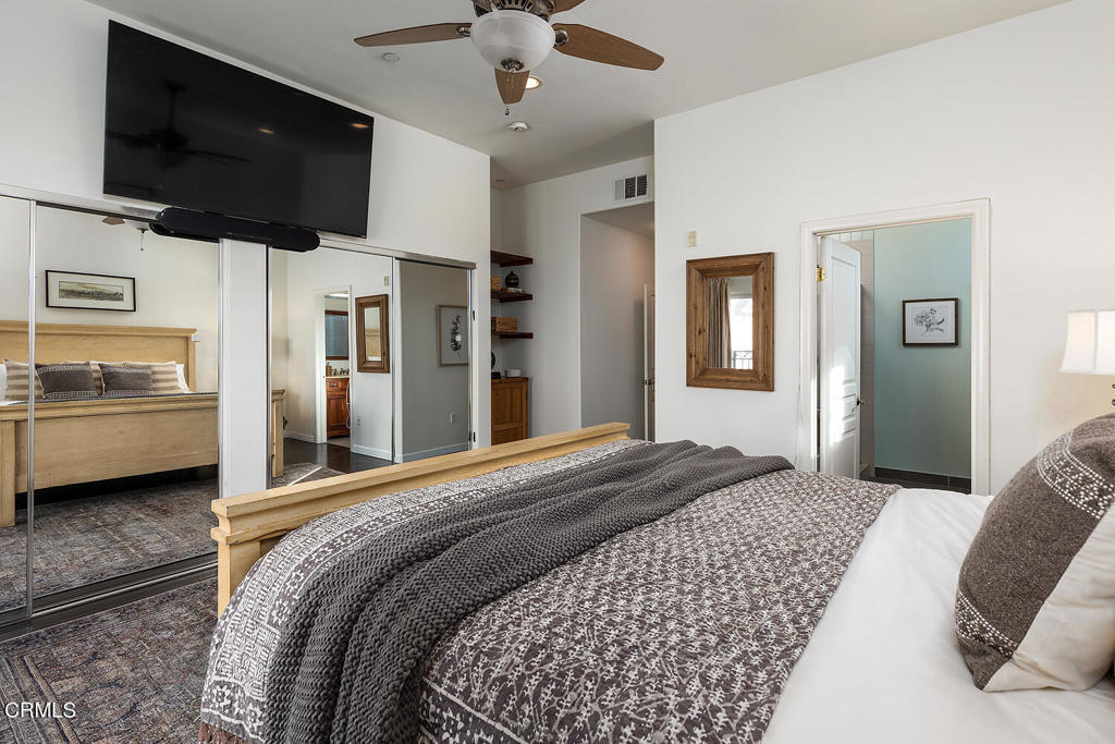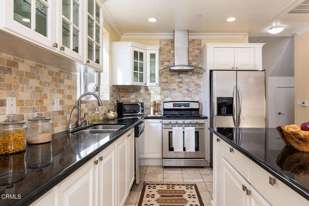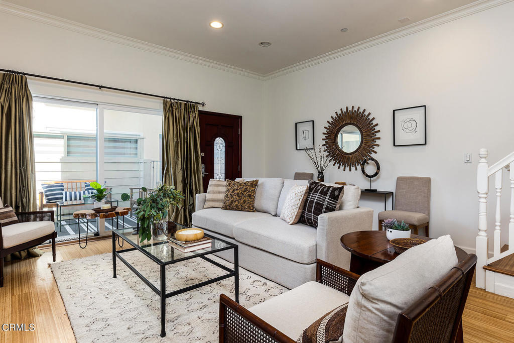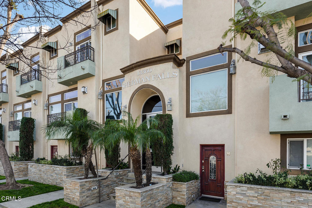 Don't miss seeing this fabulous townhome that feels like a single-family home! Sherman Falls is a contemporary building with this quiet corner unit in the back tucked away from Burbank Blvd.! Serene and charming, with a flowing floor plan, high ceilings and abundant light, this home offers much. Great space throughout, recessed lights, and the solid feeling of living in a larger home. The expansive living room boasts a gas fireplace, bamboo flooring and fresh paint. The remodeled Chef's kitchen is large, with a jumbo-sized island for abundant storage and seating. Gated, secure garage with two side by side parking spaces provides DIRECT ACCESS into a spacious, sunny bonus room with a large window that is easily used as a bedroom/office or storage (258 additional square feet). On the main floor, a conveniently located half bath and ample storage closet under the stairs are very handy. A large private patio with its own hose spigot for gardening, makes for easy Southern California indoor/outdoor living and/or alfresco dining. Upstairs, is a dedicated closet for the large Bosch washer/dryer (included!), along with two en-suite bedrooms. Both bedroom suites have bamboo floors and are spacious, sunlit, and quiet. The primary bedroom boasts plenty of closet space, a Juliet balcony and a giant flatscreen TV screen with sound bar. All of this in a private and secure community consisting of only 22 units. Ideally located in the heart of Sherman Oaks with great freeway access as well as close proximity to all the best shops, restaurants, bike paths and the Orange Line. This home is move-in ready - come visit and see!