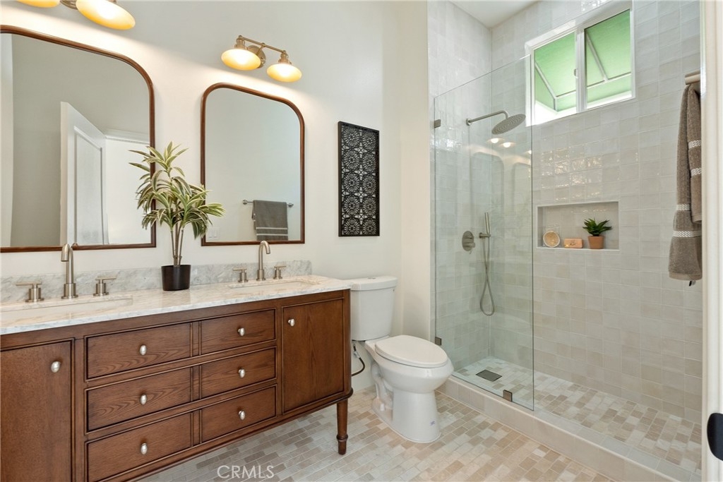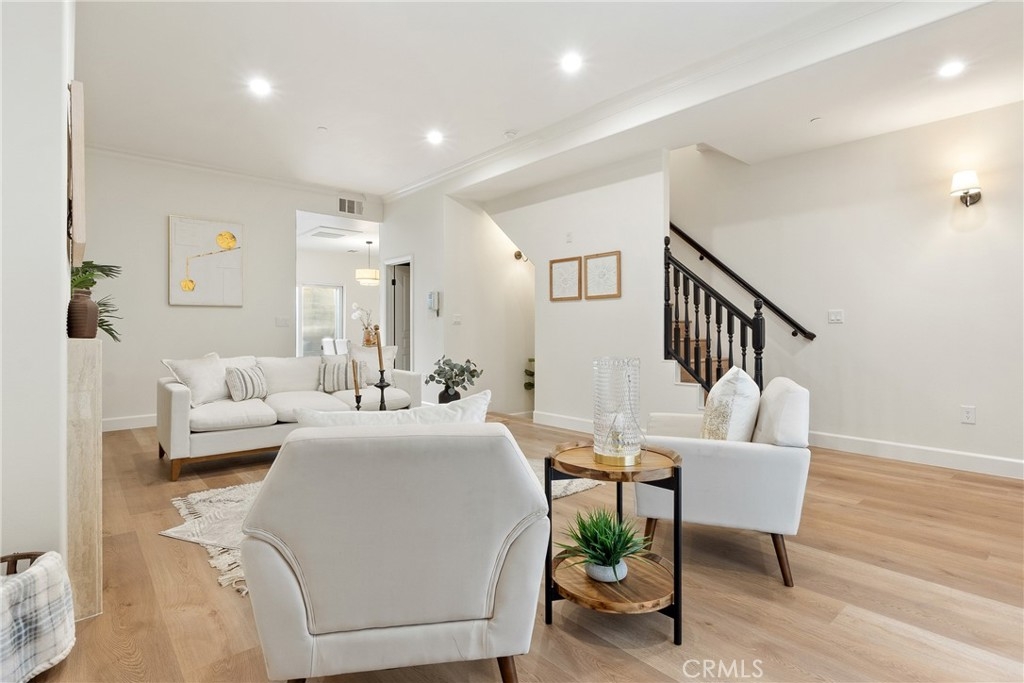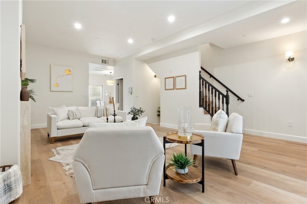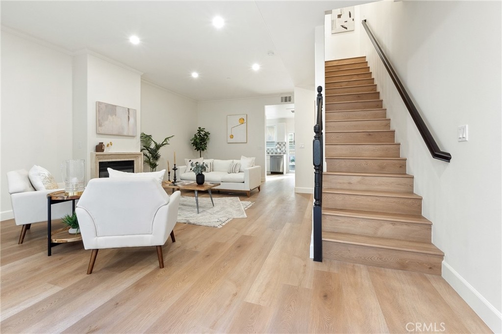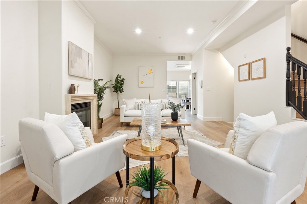 Discover this exceptional tri-story townhome that offers the perfect blend of comfort, style, and privacy! This well-appointed and tastefully renovated residence in Sherman Oaks boasts one of the best floor plans in the community, featuring soaring 10' ceilings and an abundance of natural light. Ideally located inside the building, away from Burbank Blvd, ensuring a peaceful and private living experience. The main floor features an expansive living room with a cozy fireplace, seamlessly flowing into a beautifully updated kitchen with stunning countertops, high-end stainless steel appliances, and a stylish backsplash. The adjacent breakfast nook includes a custom, built-in banquette, perfect for casual dining. From here, step outside to the oversized private patio—ideal for outdoor dining and entertaining. Upstairs, you'll find a dedicated laundry closet with a newer washer and dryer for added convenience. Both bedroom suites are bathed in natural light and offer generous space. The primary suite features a charming Juliet balcony, a huge walk-in closet, and a luxurious en-suite bathroom with dual vanity sinks and a large walk-in shower. This turn-key property offers DIRECT ACCESS from the gated, secure garage into a versatile downstairs BONUS room—perfect for a gym, office, or additional storage. Set within an intimate, private community of only 22 units, this quiet retreat is conveniently located with quick access to the 405, 101, and 170 freeways and just moments away from top-tier shops, restaurants, and entertainment. Don't miss this rare opportunity to own a townhome that truly feels like home!