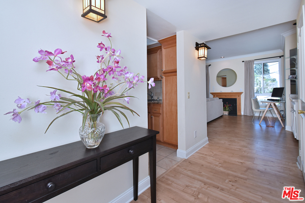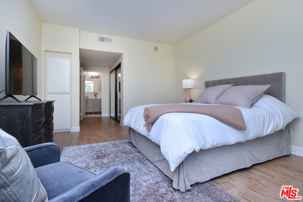 Prime location! Spacious and bright 3+3 corner unit condo with an ideal layout and no wasted space. Unit features high ceilings, new double pane windows, high-end waterproof laminate flooring, newer appliances, and a laundry room. Entry way leads into the living room and an updated kitchen with granite counters. Loads of natural light via many windows and access to a large, wraparound balcony with nice views. Spacious master suite with no common walls. It features a large walk-in closet and updated bathroom with dual-sink vanity. The two secondary bedrooms are both good sized, with wall-to-wall slider closets. This condo feels like a single-family home. The complex features 2 side-by-side parking spaces, ample guest parking, and a sparkling pool. The unit is steps to shops, and grocery stores on Ventura Blvd, and offers convenient access to freeways, canyon roads, Studios, and the West Side. Low HOA dues! Listing agent is one of the owners.
