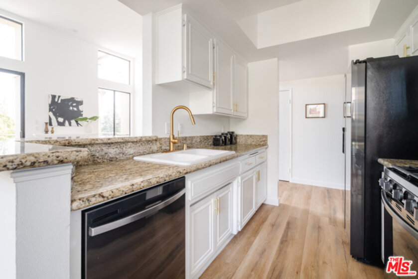 Stunning, light-filled penthouse with soaring ceilings, elegant fixtures, and beautiful views. Large windows fill the rooms with sun, while surrounding balconies offer outdoor space for each room. With 3 bedrooms, 3 full baths, over 1,400 square feet, and interconnected kitchen and living/dining areas, this condo is great for entertaining or for roommates. The kitchen includes new Samsung appliances and granite countertops, and the home has been updated throughout. The master bedroom boasts an en-suite bath with his and her sinks and a large walk-in closet. Each bedroom has its own bath and spacious closets. The in-unit laundry room has a full-size washer and dryer plus extra storage. After enjoying the pool and the fabulous sunset, curl up in front of the gas fireplace and enjoy your delightful home. Located on the top floor corner, this unit has both western and northern views and shares only one wall in the 3rd bedroom. Two side-by-side parking spots in the gated subterranean garage. Close to shopping and trendy restaurants with easy access to the 101 as well as Beverly Hills and West Hollywood via Coldwater Canyon. You don't want to miss this one!