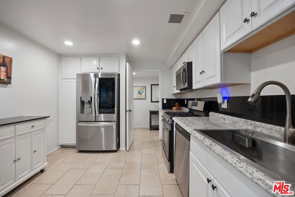 Welcome to this stunning first-floor residence located in one of Sherman Oaks' most desirable communities. This rare corner unit offers 3 bedrooms and 2 bathrooms with 1625 square feet of beautifully updated interior living space, plus an additional 275 -square-foot private patio bringing the total usable space to approximately 1900 square feet. The open-concept living and dining areas flow seamlessly to the expansive patio, creating a flexible and inviting layout ideal for modern living and entertaining. The home has been extensively updated throughout. The chef's kitchen features a tiled backsplash stainless steel appliances, with a 5 burner gas top stove/oven, updated cabinetry, and a nice sized pantry. Perfect for both everyday living and hosting guests. The spacious primary suite is a true retreat, offering a large walk-in closet, a recently renovated ensuite bathroom, and direct access to the patio. The second bedroom is generously sized, also with direct patio access, and is conveniently located next to the beautifully updated hall bathroom. The third bedroom is thoughtfully positioned on the opposite side of the home, providing ideal privacy for guests or a home office and also features patio access. The private patio is a rare and serene oasis incredibly hard to find offering a peaceful escape in the heart of the city. Additional upgrades include updated bathrooms, all windows, sliding glass doors, appliances, and in-unit washer and dryer plus recessed dimmable lights thought out the unit The well-maintained building offers a private swimming pool, separate in-ground spa, sauna, dog play area and gated garage with two tandem parking spaces , plus a large private storage closet. HOA dues include water, trash, and earthquake insurance. Ideally located in prime Sherman Oaks just moments from the Sherman Oaks Galleria, Ventura Boulevard, top dining, shopping, and convenient access to the 101 and 405 freeways. Just blocks away from Lake Balboa park, offering 2000 acres of recreational park space. This vast area includes parks, a 225-acre wildlife reserve, three golf courses, Lake Balboa, and sports fields. Don't miss this exceptional opportunity to own a truly stunning condo in an unbeatable location. Seller may need 1 month lease back. Fireplace is decorative. Offers due by 3/9