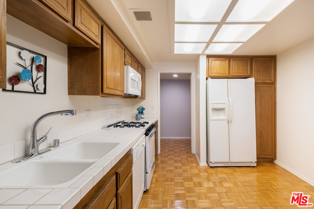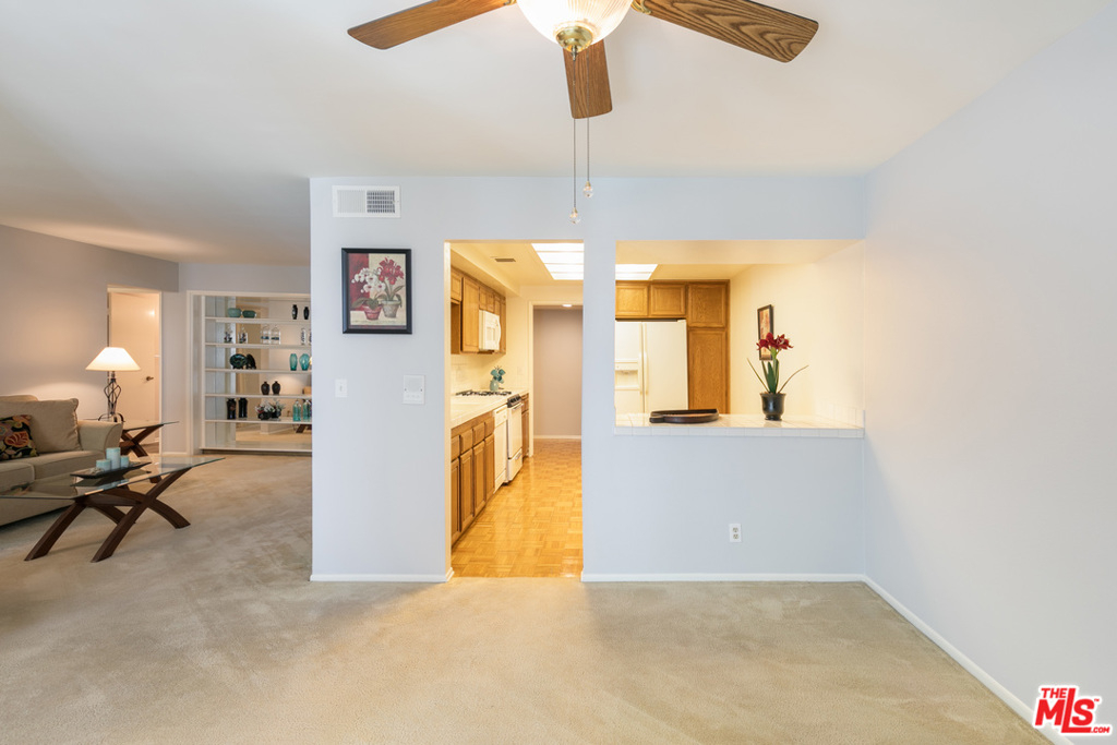 This spacious, almost 1400 sq ft., 2 bedroom 2 bath single story condo welcomes you to bring your own imagination and taste. The open floor plan has a lovely gas fireplace as the focal point, with a large balcony. Freshly painted with gorgeous custom window treatments and built- ins throughout. The primary bedroom is en-suite with a designated balcony and proper sized walk-in closet. The second bedroom also has a walk-in closet. The generous sized kitchen is complete with appliances, breakfast bar and ample cabinet space. There is also a separate dining area that opens to the living room. The unit also features central heating and A/C and in-unit, side by-side washer and dryer. Beautiful common area pool and spa. There are two tandem parking spaces in a gated subterranean garage. The building has elevator access and a walk-in storage shed allocated to the unit. Located minutes from the Sherman Oaks Galleria, a new Whole Foods, Ventura Blvd. and easy access to the 101 and 405 freeways.