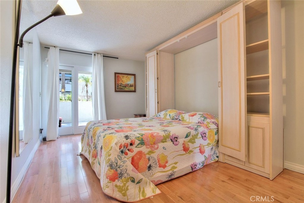Easy to show. Extremely spacious and well laid-out floor plan makes this home comfortable. The neighborhood is quiet and so are the neighbors. There is additional sound proofing in the master bedroom creating a very private feeling. There is a double door entry to an entry hallway with a huge slab of beautiful marble. Straight ahead is the coat closet made of cedar. The living room is large and has connections for cable TV. There is a WIFI connection in the first bedroom. The master bedroom has two closets and the linen closet. One of these closets is so large it has been used in the past as an office and another time as an additional bedroom. It has cedar walls and a cedar ceiling. The kitchen has a space for a recessed refrigerator and is roomy enough to be an eat-in kitchen. The counters are granite. The adjacent dining room has a built-in area of cupboards to store your best dishes with a granite countertop. Each of the following rooms has a MILGARD sliding glass door to the 40 long entertainment patio: dining room, living room, 1st bedroom and master bedroom. The patio has a water supply for watering plants. NOTE: 2 large storage sheds are yours in the underground parking area in front of your side by side parking spots. Additionally, there is a sauna, a huge pool and a hot jacuzzi for your use.