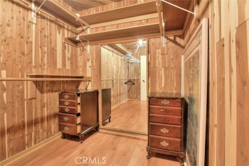 Easy to show. Extremely spacious and well laid-out floor plan makes this home comfortable. The neighborhood is quiet and so are the neighbors. There is additional sound proofing in the master bedroom creating a very private feeling. There is a double door entry to an entry hallway with a huge slab of beautiful marble. Straight ahead is the coat closet made of cedar. The living room is large and has connections for cable TV. There is a WIFI connection in the first bedroom. The master bedroom has two closets and the linen closet. One of these closets is so large it has been used in the past as an office and another time as an additional bedroom. It has cedar walls and a cedar ceiling. The kitchen has a space for a recessed refrigerator and is roomy enough to be an eat-in kitchen. The counters are granite. The adjacent dining room has a built-in area of cupboards to store your best dishes with a granite countertop. Each of the following rooms has a MILGARD sliding glass door to the 40 long entertainment patio: dining room, living room, 1st bedroom and master bedroom. The patio has a water supply for watering plants. NOTE: 2 large storage sheds are yours in the underground parking area in front of your side by side parking spots. Additionally, there is a sauna, a huge pool and a hot jacuzzi for your use.