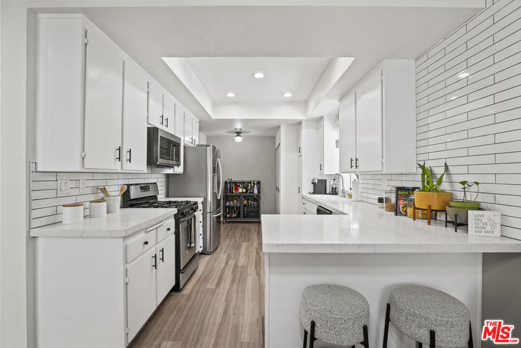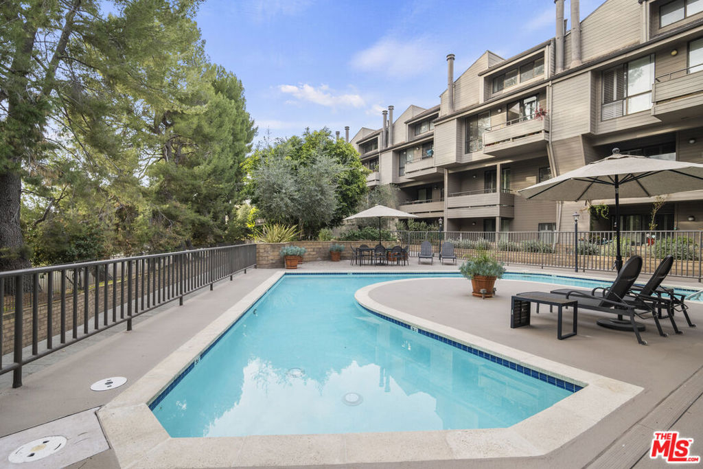 Welcome to your sophisticated 2 bedroom, 2 bathroom condo nestled in the heart of Sherman Oaks. Step inside and discover a seamless floor plan that connects the living room, dining, and kitchen with ease, perfect for entertaining or relaxation. Contemporary flooring, sleek recessed lighting, and a fireplace all come together to improve both the style and function of this home. The primary suite serves as a welcome retreat, complete with an ensuite bathroom and a spacious walk-in closet. The second bedroom and bathroom are both generously sized and updated, and in-unit laundry enhances the convenience of the space. An expansive patio provides plenty of outdoor space for enjoying the fresh air. The unit also comes with two parking spots in the secure garage, along with accessible guest parking. Located near top-notch schools and vibrant Ventura Boulevard, this building is perfectly situated for a balance of peaceful living and urban lifestyle. The building boasts various amenities such as two pools, a gym, and a recreation area. HOA fees cover internet, basic cable, Earthquake insurance, access to amenities, and a trash and maintenance service. Welcome home!