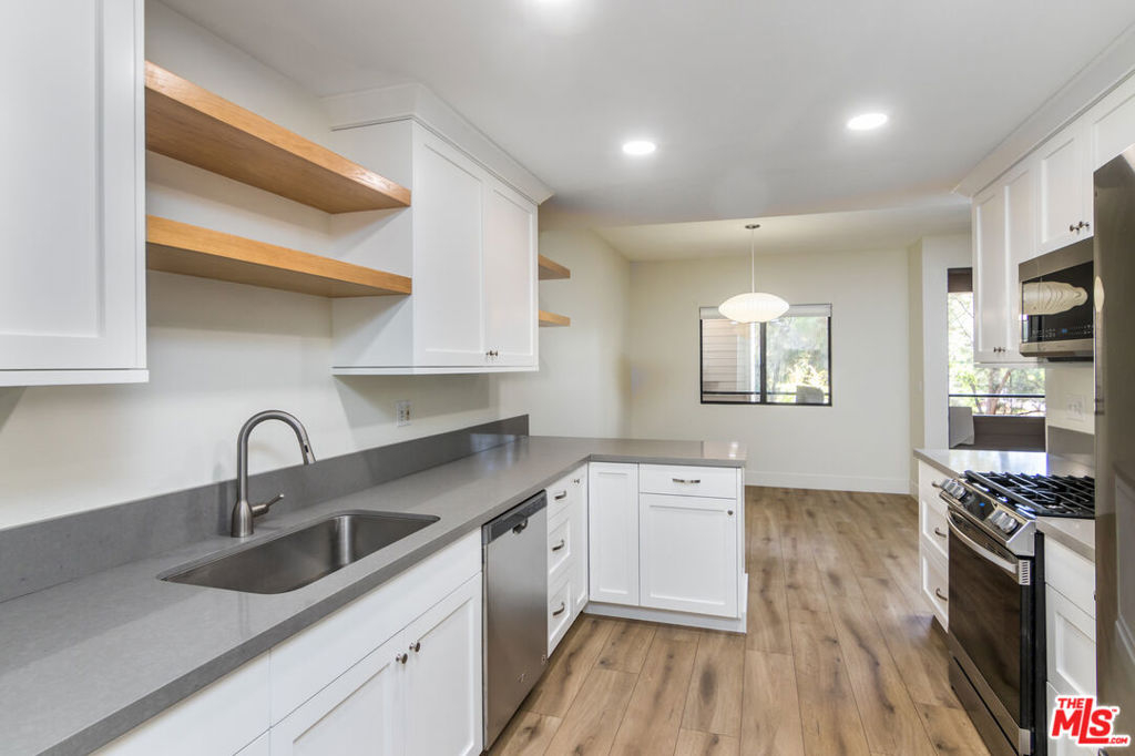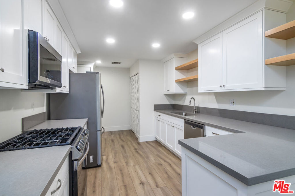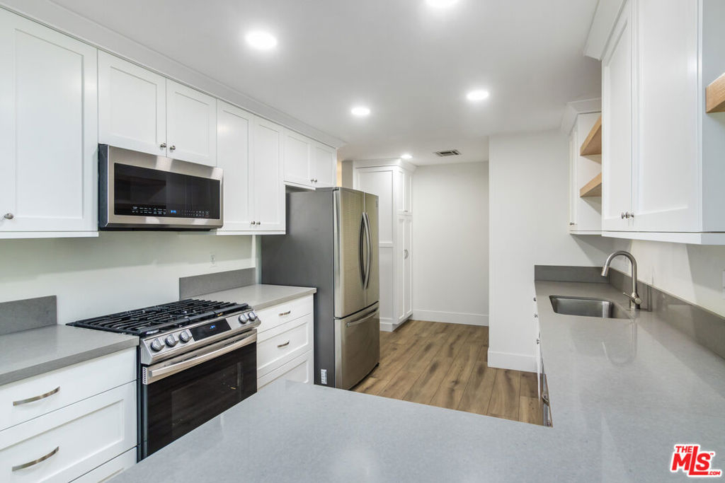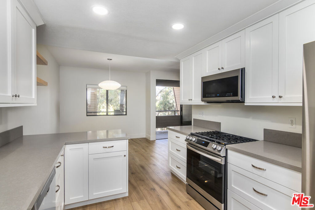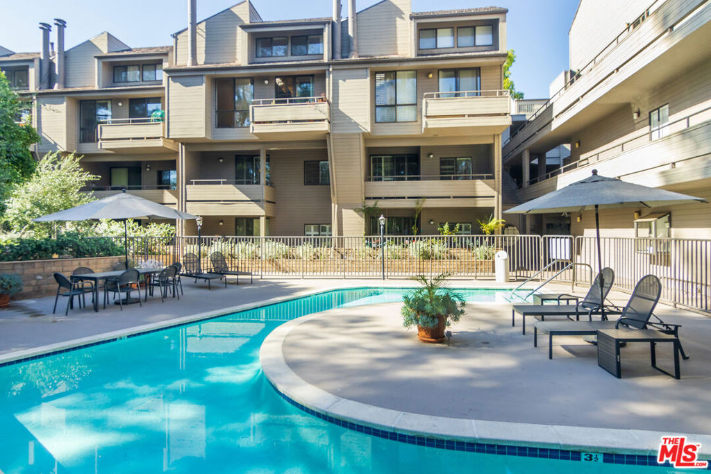 Amazing location! Prime Sherman Oaks modern open lay-out, single level two-bedroom two bath condo with a great balcony off the living room and 9 " ceilings offers a bright southern exposure and lush green views from every window. This beautiful property features: A great remodeled kitchen, a large dining area and living room, fireplace and beautiful floors flowing from room to room. The master suite has its own private balcony, master bathroom and an oversized walk-in closet. The secondary bedroom is ample and has a nice size closet. The laundry is by the kitchen and there is plenty of storage space. The unit is a corner unit, and it comes with two tandem parking spots and a storage shed. Lovely, maintained controlled access complex offers an abundance of guest parking, two pools, dry sauna, rec room and gym. HOA include EQ Insurance, basic cable, Internet, hot and cold water and maintenance. Close to freeways, schools and a few minutes' walk to Ventura Blvd's shops and restaurants. Some photos have been staged. Very easy to show.
