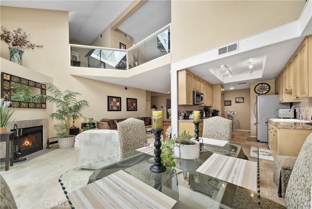 This 2-story, two-bedroom, two-bathroom loft home offers approximately 1,440 square feet of living space with a spacious and versatile layout. The property features abundant natural light throughout, highlighting the neutral color palette. The primary bedroom has ample space and natural lighting through the large windows and skylights, complemented by a spacious bathroom with beautiful tile work and ample counter space. There is extra space off the primary bedroom which can be used as a study, office or gym. The downstairs bedroom is en-suite as well, complete with a balcony overlooking the neighborhood. The open-concept living area provides a seamless flow, featuring vaulted ceilings that create a sense of airiness. The kitchen is outfitted with granite countertops and a neutral aesthetic, offering ample counter space for meal preparation. Situated with scenic outdoor views, this property provides a tranquil and serene living environment. Residents can enjoy access to two resort style pools, a spa, a sauna and a gym, as well as a bonus area that adds to the overall functionality and flexibility of the home. Side by side parking! Centrally located in Sherman Oaks, near yummy restaurants, great shopping, and major freeways.