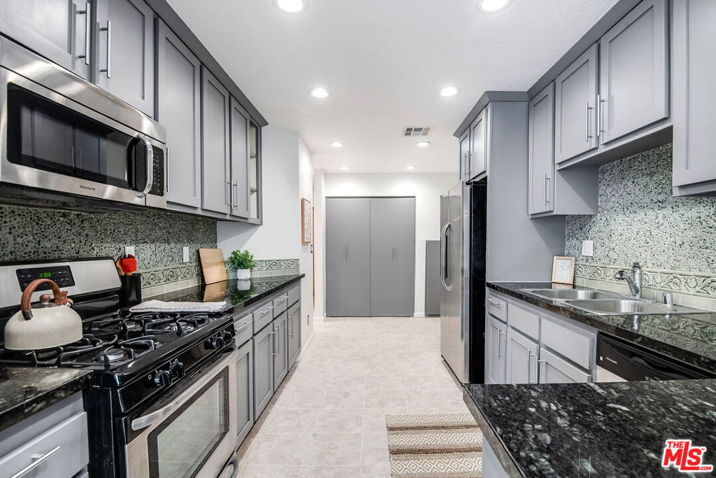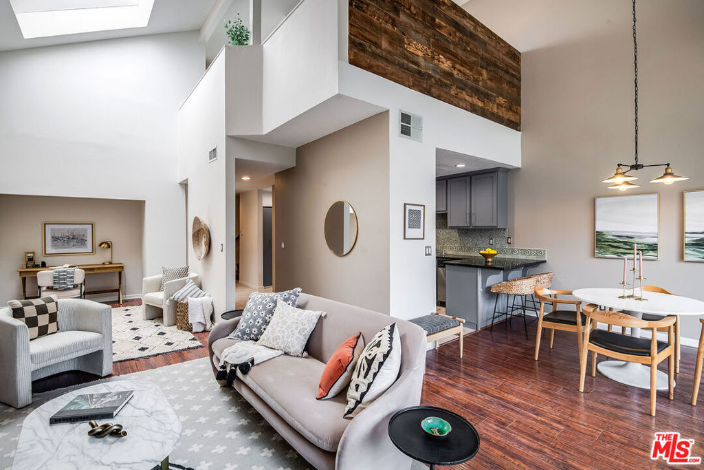 Updated contemporary Sherman Oaks townhouse! Bright and beautiful in one of the Valley's most coveted areas! Features a gorgeous modern palette and soaring ceilings with a large skylight. Entertainer's two-story open living and dining areas boast breathtaking windows, fireplace, laminate wood flooring and balcony overlooking spacious courtyard. Upgraded modern kitchen features stainless steel appliances, quartz tops and great storage! Off the living room is an open den (or add wall/divider to create 2nd bedroom/office) with closet. Full updated bathroom and side by side laundry finish out the first floor. Venture upstairs to find a spacious loft bedroom overlooking the living room that includes a walk-in closet and en suite custom bathroom. To compliment this amazing home is an HOA with high reserves and amenities that few communities have! Two resort-style pools and hot tub, new upscale patio furniture, workout room with new equipment, new sauna, a rec room that can be reserved for private events, and restrooms with showers. Dues also include earthquake insurance, DIRECTV, high speed internet, water and trash. Two tandem parking spaces and storage shed in gated parking garage. Enjoy this amazing, well-maintained complex, and quiet location set away from the road. Ample visitor parking around complex, including a dedicated visitor parking lot, and walking distance to numerous restaurants and shops on Ventura boulevard!! We are ready to welcome you home!