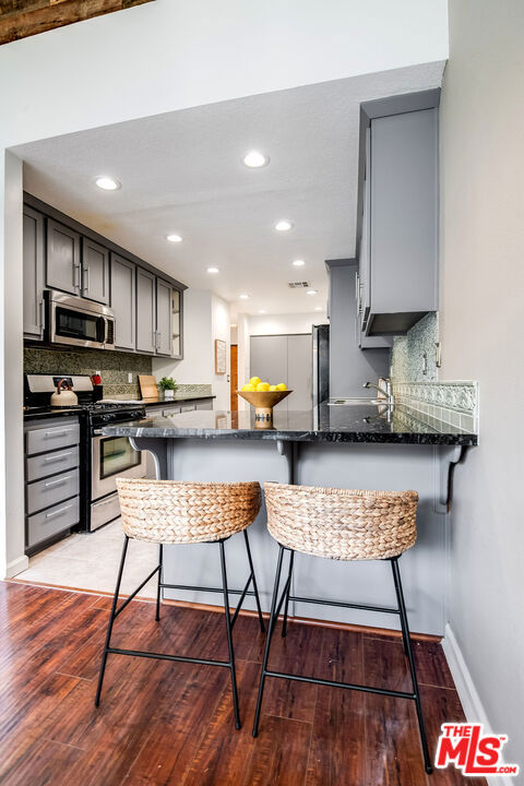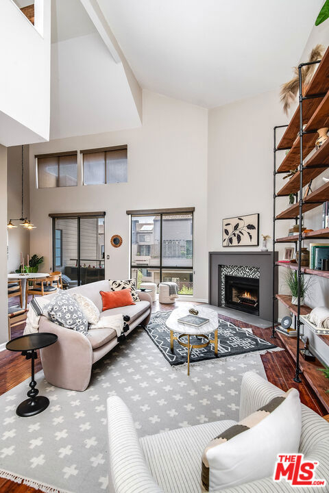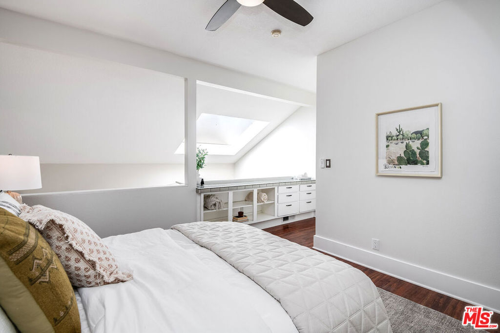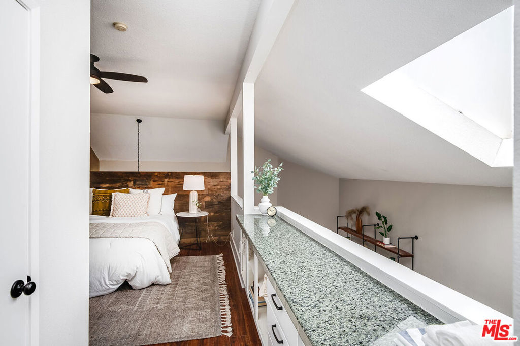 Updated contemporary Sherman Oaks townhouse! Bright and beautiful in one of the Valley's most coveted areas! Features a gorgeous modern palette and soaring ceilings with a large skylight. Entertainer's two-story open living and dining areas boast breathtaking windows, fireplace, laminate wood flooring and balcony overlooking spacious courtyard. Upgraded modern kitchen features stainless steel appliances, quartz tops and great storage! Off the living room is an open den (or add wall/divider to create 2nd bedroom/office) with closet. Full updated bathroom and side by side laundry finish out the first floor. Venture upstairs to find a spacious loft bedroom overlooking the living room that includes a walk-in closet and en suite custom bathroom. To compliment this amazing home is an HOA with high reserves and amenities that few communities have! Two resort-style pools and hot tub, new upscale patio furniture, workout room with new equipment, new sauna, a rec room that can be reserved for private events, and restrooms with showers. Dues also include earthquake insurance, DIRECTV, high speed internet, water and trash. Two tandem parking spaces and storage shed in gated parking garage. Enjoy this amazing, well-maintained complex, and quiet location set away from the road. Ample visitor parking around complex, including a dedicated visitor parking lot, and walking distance to numerous restaurants and shops on Ventura boulevard!! We are ready to welcome you home!