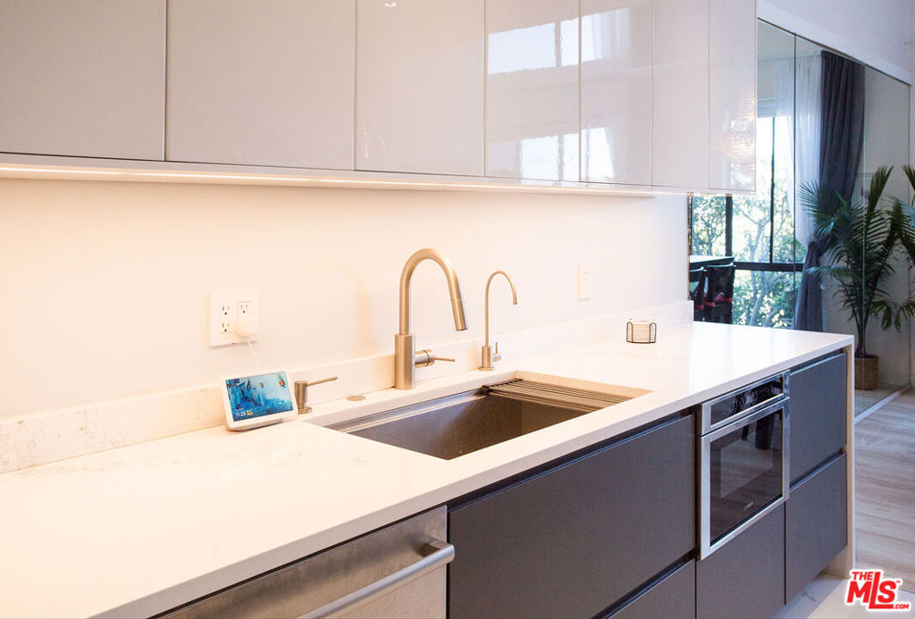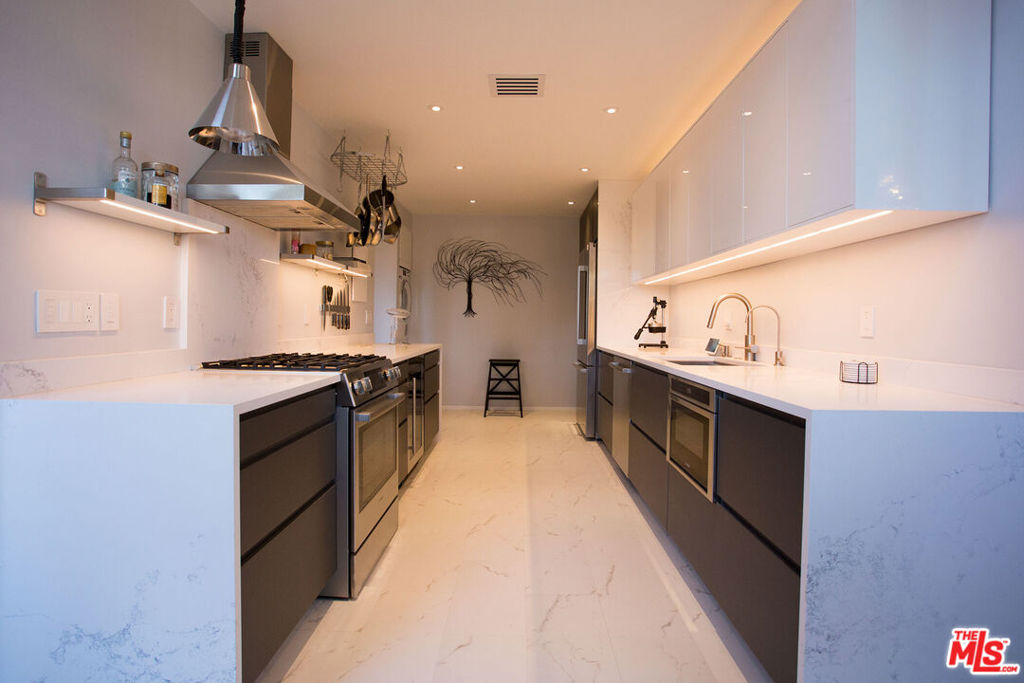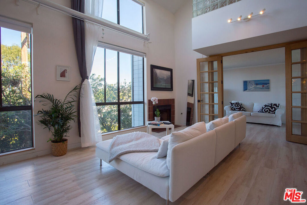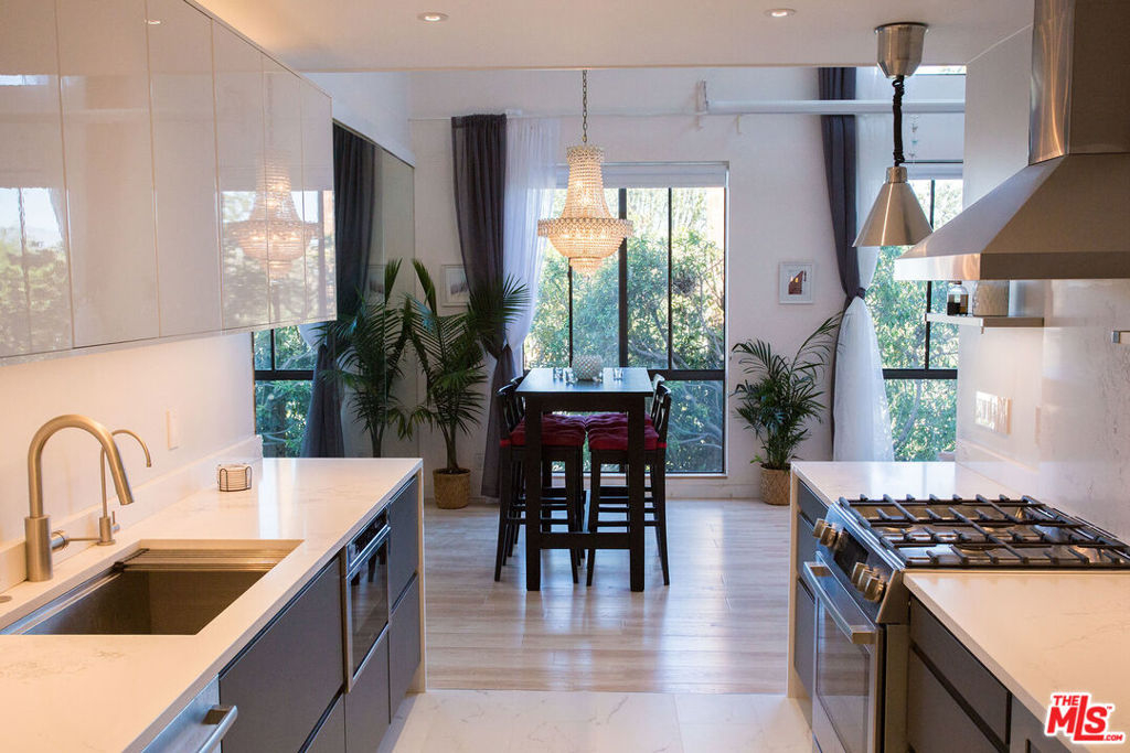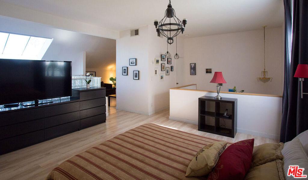 "Luxury Two-story Condo | Panoramic Views | Chef's Dream Kitchen: "This spacious two-story unit offers 1,340 sq. ft. of modern, comfortable living. Large windows with panoramic mountain views, high ceilings, and a massive skylight fill the home with natural light, while an open, flexible floor plan makes it easy to customize your space. Inside, the remodeled kitchen features quartz countertops, smart storage solutions, and new high-end appliances, including a Bosch refrigerator, gas stove, dishwasher, and built-in microwave, as well as a 52-bottle wine cooler, infrared heating lamp, and reverse-osmosis water filtration system and Miele washer and dryer. Both bathrooms have been updated with modern fixtures, recessed lighting, and high-pressure showers. The main living room includes a fireplace, dimmable recessed lighting, and convenient built-in storage. The unit's bedrooms provide privacy and comfort. The upstairs bedroom includes a walk-in closet, a large en-suite bathroom with double sinks, and windows that promote airflow. The downstairs space can function as a full bedroom with its own bathroom or a living area extension, complete with a wall-to-wall balcony offering quiet outdoor space with a gas grill and bar-style seating. Additional highlights include smart home technology, a Nest thermostat, central heating and cooling, and 2-car parking in a gated area with dedicated EV charging station. The community offers two swimming pools, a jacuzzi, sauna, gym, and spacious recreation room. HOA fees cover cold and hot water, heating, trash, sewage, internet, and cable TV. Centrally located in Sherman Oaks, you'll find shops, restaurants, top-rated schools, and Westfield shopping mall, within walking distance, along with easy access to major freeways and public transportation.