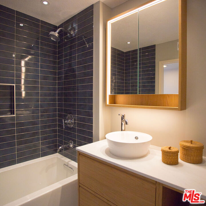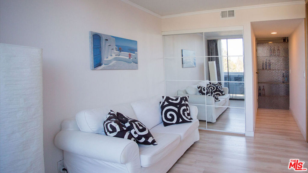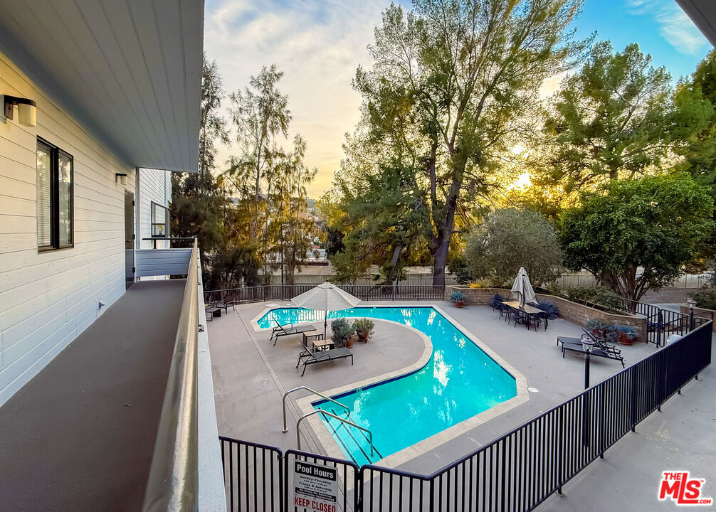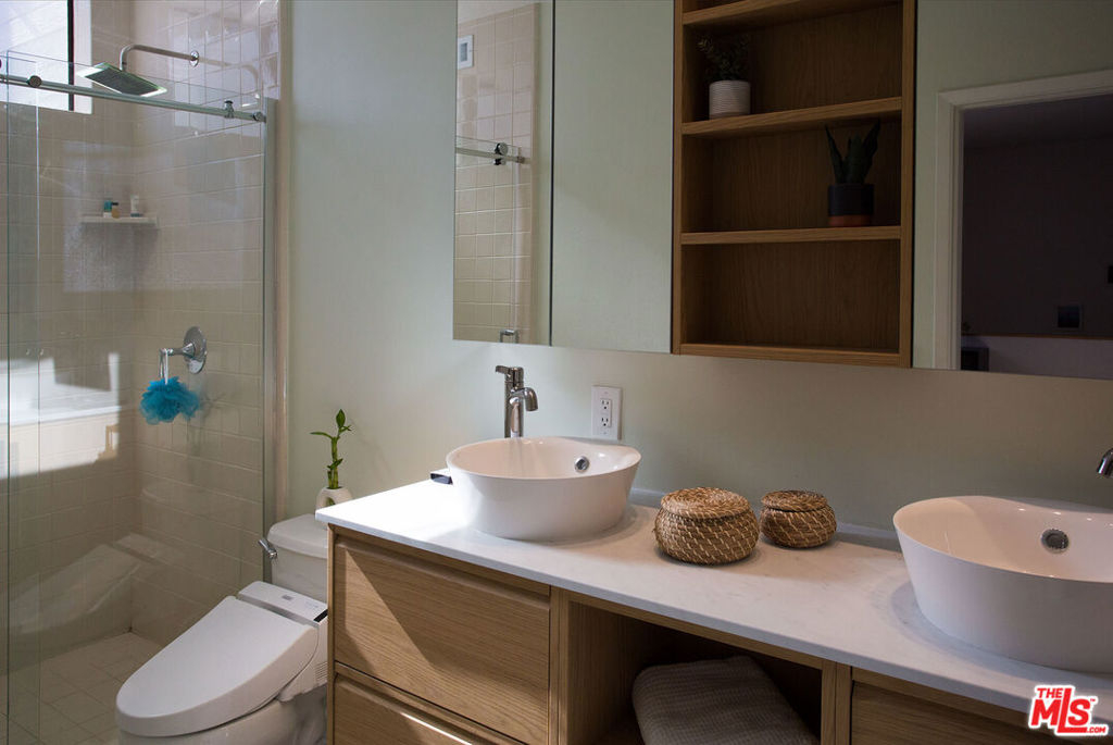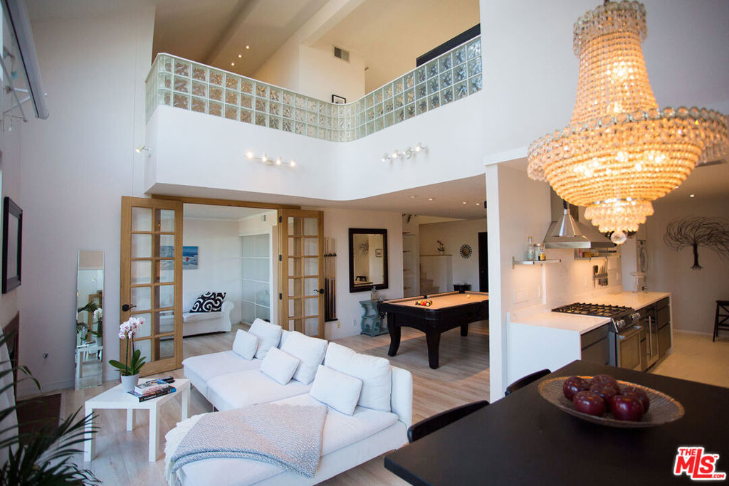 "Luxury Two-story Condo | Panoramic Views | Chef's Dream Kitchen: "This spacious two-story unit offers 1,340 sq. ft. of modern, comfortable living. Large windows with panoramic mountain views, high ceilings, and a massive skylight fill the home with natural light, while an open, flexible floor plan makes it easy to customize your space. Inside, the remodeled kitchen features quartz countertops, smart storage solutions, and new high-end appliances, including a Bosch refrigerator, gas stove, dishwasher, and built-in microwave, as well as a 52-bottle wine cooler, infrared heating lamp, and reverse-osmosis water filtration system and Miele washer and dryer. Both bathrooms have been updated with modern fixtures, recessed lighting, and high-pressure showers. The main living room includes a fireplace, dimmable recessed lighting, and convenient built-in storage. The unit's bedrooms provide privacy and comfort. The upstairs bedroom includes a walk-in closet, a large en-suite bathroom with double sinks, and windows that promote airflow. The downstairs space can function as a full bedroom with its own bathroom or a living area extension, complete with a wall-to-wall balcony offering quiet outdoor space with a gas grill and bar-style seating. Additional highlights include smart home technology, a Nest thermostat, central heating and cooling, and 2-car parking in a gated area with dedicated EV charging station. The community offers two swimming pools, a jacuzzi, sauna, gym, and spacious recreation room. HOA fees cover cold and hot water, heating, trash, sewage, internet, and cable TV. Centrally located in Sherman Oaks, you'll find shops, restaurants, top-rated schools, and Westfield shopping mall, within walking distance, along with easy access to major freeways and public transportation.