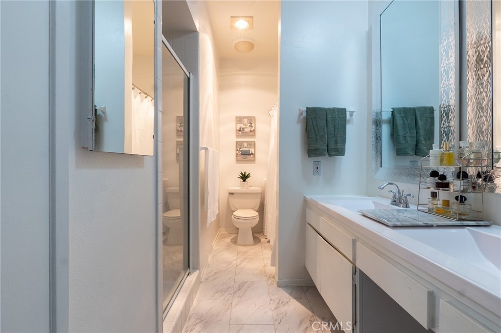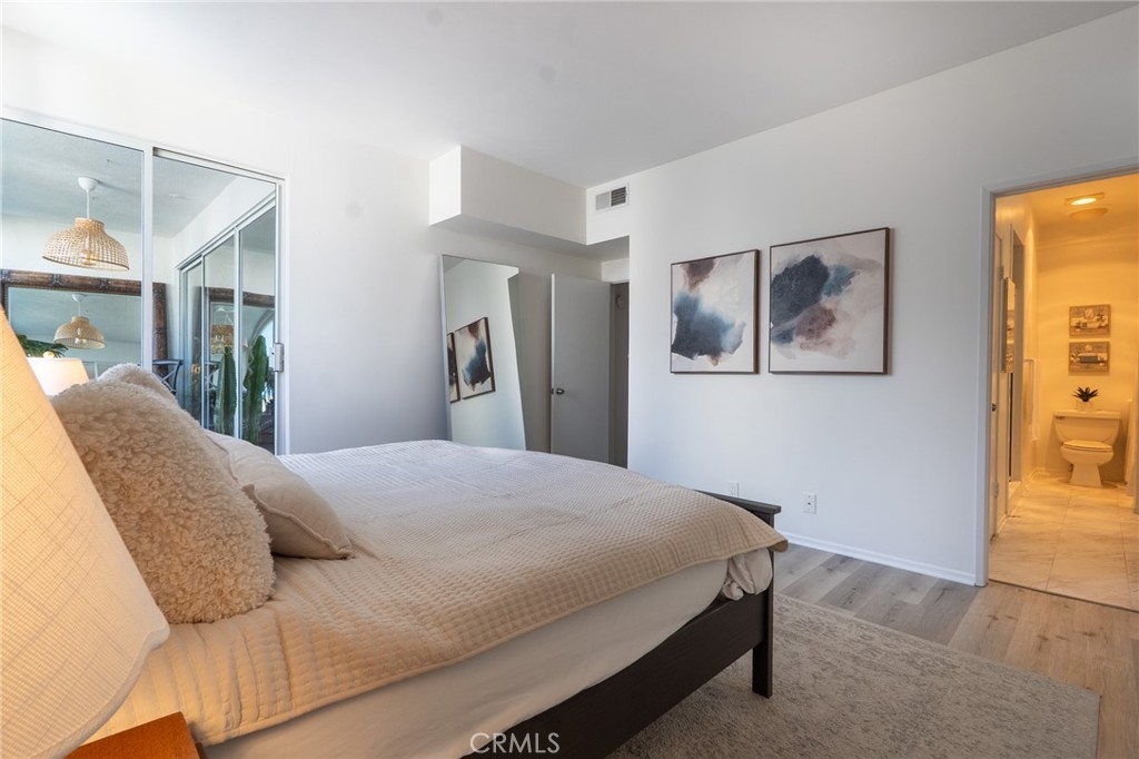 Located in the heart of Sherman Oaks, just one block south of Ventura Blvd, this bright and spacious 1-bedroom, 2-bath condominium is part of the highly desirable and luxurious Sherman Villas , one of the most sought-after buildings south of the Blvd, surrounded by multi-million dollar homes. Unit 216 enjoys a prime interior location overlooking the lush, resort-like courtyard with mature trees and peaceful greenery offering abundant natural light throughout.Enter through double doors into an inviting open-concept living and dining area that flows seamlessly into a charming sunroom overlooking the courtyard ideal for a home office, reading nook, or relaxation space. The galley kitchen features stainless steel appliances, including a new microwave, newer oven, refrigerator and dishwasher , tile countertops, and ample cabinetry.The generous bedroom features a beautiful floor-to-ceiling window that brings in natural light and greenery views, two closets including a newly built-in eight-door white wardrobe reaching the ceiling, and an en-suite bathroom with a nice-sized walk-in closet. A second full bathroom provides added convenience for guests.This well-maintained unit also includes newer laminate flooring throughout. Sherman Villas offers resort-style living with a swimming pool, spa, fitness center, and beautifully landscaped garden courtyard. The secure, well-managed building includes gated entry and one parking space in the underground garage.Enjoy unmatched urban convenience with neighborhood charm , just moments from Ventura Blvd’s best restaurants, cafes, boutiques, and Whole Foods, with easy freeway and Westside access.