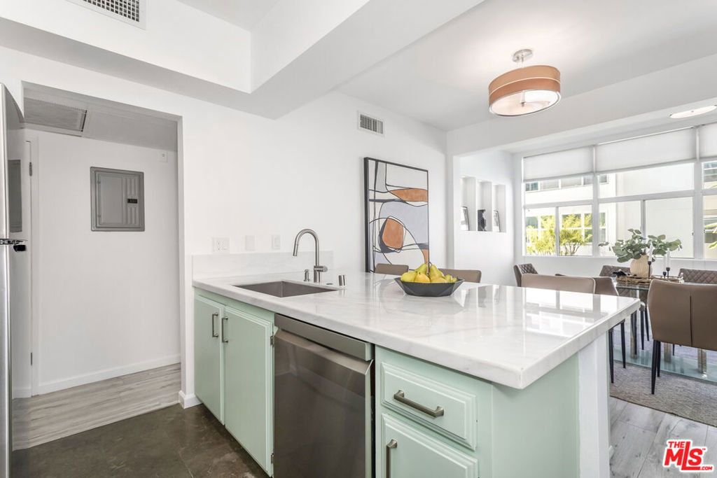 OFFERS DUE 08/21 @5p. Crisp, freshly renovated & bright large unit in the exclusive Mid-Century Modern Sherman Villas. Ideal location within the building above/overlooking the pool. Renovations: freshly painted, all new lighting fixtures, kitchen w/marble counters & newly added Carrera marble backsplash & new wood laminate flooring in Primary bedroom. Perfect location South of Ventura Blvd. close to the best shopping, dining, Whole Foods & more. Dickens St. is lined w/mature trees & has a real neighborhood feeling. Secure main entrance w/cameras, gated parking, sparkling pool, spa, community room & a nice gym too!