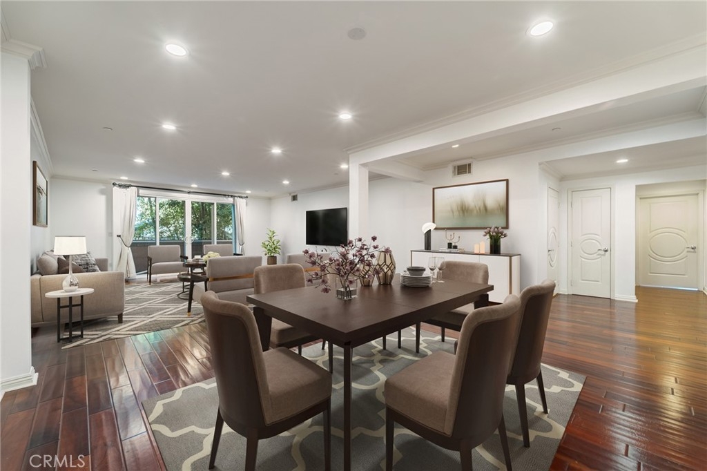 END UNIT SINGLE STORY ELEVATOR BUILDING NEWER BUILDING LOW HOA. TUNKEY Welcome to this stunning 3-bedroom, 3-bath condo in the heart of Sherman Oaks, offering over 1,800 sq. ft. of luxurious living space. This rare corner END unit features a spacious open floor plan with beautiful hardwood floors throughout and abundant natural light flowing in from two private patios — one off the living area and another from the oversized primary suite. The chef’s kitchen is equipped with stainless steel appliances, granite countertops, a breakfast bar, and an adjacent dining area perfect for entertaining. The primary suite is truly a retreat, featuring a custom walk-in closet with built-ins and a spa-like bathroom complete with a soaking tub, separate shower, and space for a double vanity. Additional highlights include in-unit laundry, secured underground parking with private storage, ample guest parking, and low HOA dues in a well-maintained elevator building. Ideally located near Ventura Blvd’s shops, restaurants, Gelson’s, and Whole Foods, WITHIN MINUTES TO 101 IDEAL LOCATION this home perfectly blends convenience, style, and comfort.