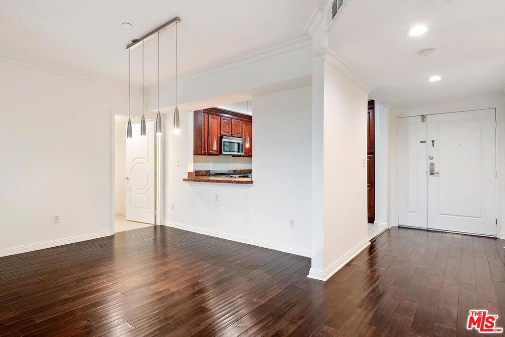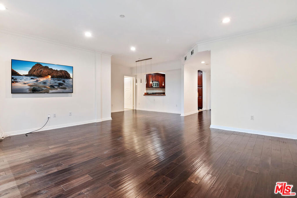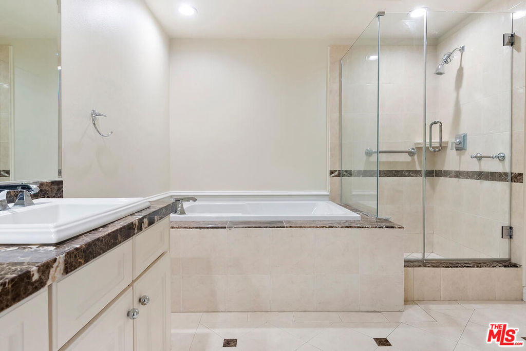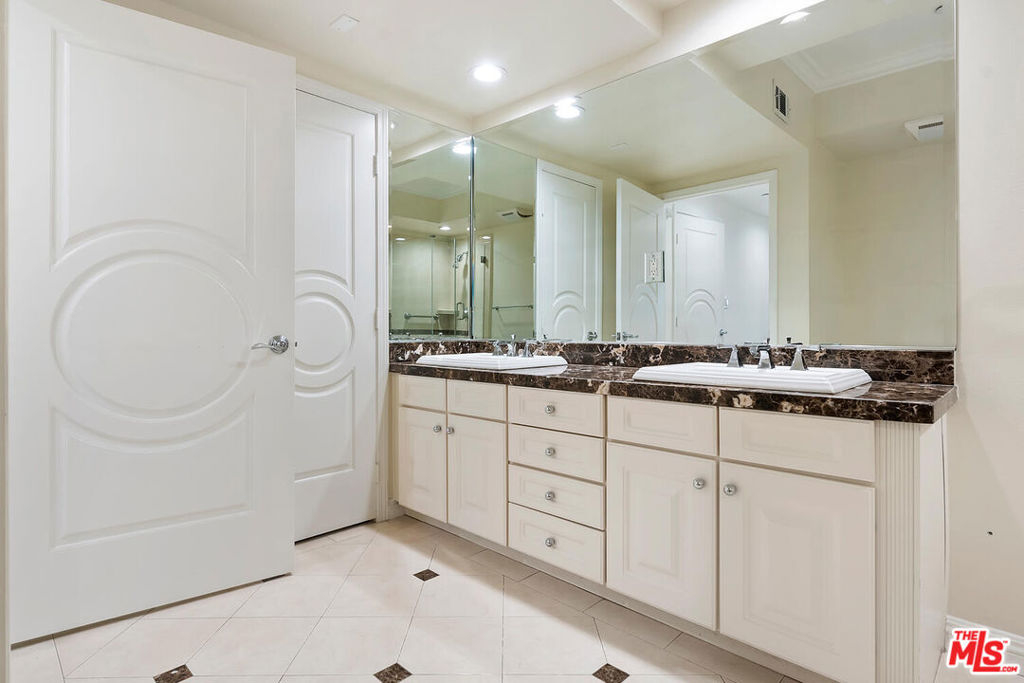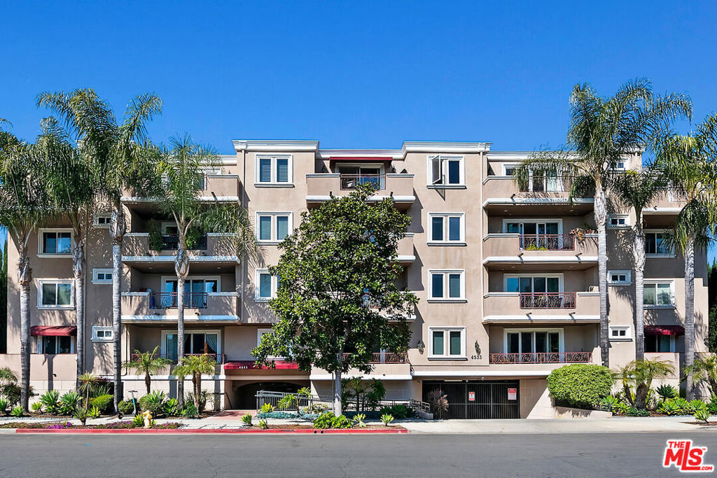 Fabulous condo in the heart of Sherman Oaks. Great floor plan with primary suite on one side and 2nd bedroom suite on the other side. Beautiful hardwood floors, great kitchen with granite counters, stainless steel appliances with breakfast bar and separate dining area. Large living room with tree top views, so much natural light streaming in. Primary bath is huge! Double vanities, separate tub and oversized shower, gorgeous walk in closet with fabulous built-ins. Primary bedroom is quite large with lots of natural light as well. In unit full size laundry. Great guest powder room. Location is a 10+, close to Gelson's, Whole Foods, Ventura Blvd and the 101 Freeway. 2 tandem parking spaces in gated underground garage along with separate secured storage space great for skis and luggage! Plenty of guest parking. Don't miss this unit, this building is special!