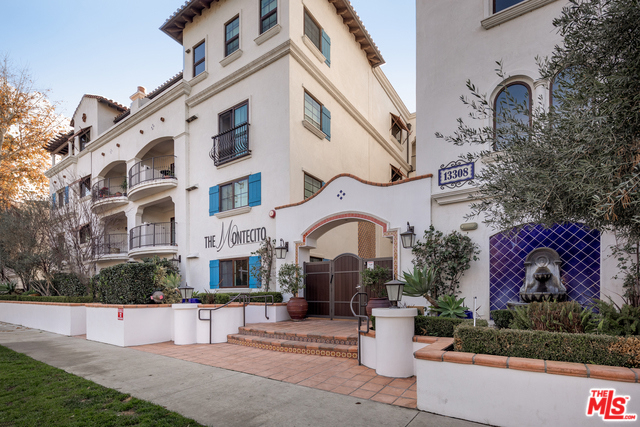 Gorgeous, most sought-after floor plan in the desirable Montecito collection. Santa Barbara resort style living offers a sophisticated yet casual lifestyle. Stunning design elements include custom built-ins, beautiful archways and recessed lighting throughout. Unit is on the penthouse floor with only one shared wall for ultimate privacy and quietness. Large, grand living room and dining area that leads to a private patio. Gourmet kitchen with granite countertops and stainless-steel appliances. The unit encompasses a master suite, a guest bedroom with en-suite and an additional bedroom and/or office that has a full bath across the hall. Plenty of closet space plus additional storage in the garage. Secured access with serene courtyard and fitness center. Tandem parking spots near the elevator, with an option to connect electric car charging station. Plenty of nearby restaurants that will delight any food connoisseur and high-end grocery stores. Located in the Dixie Canyon school district