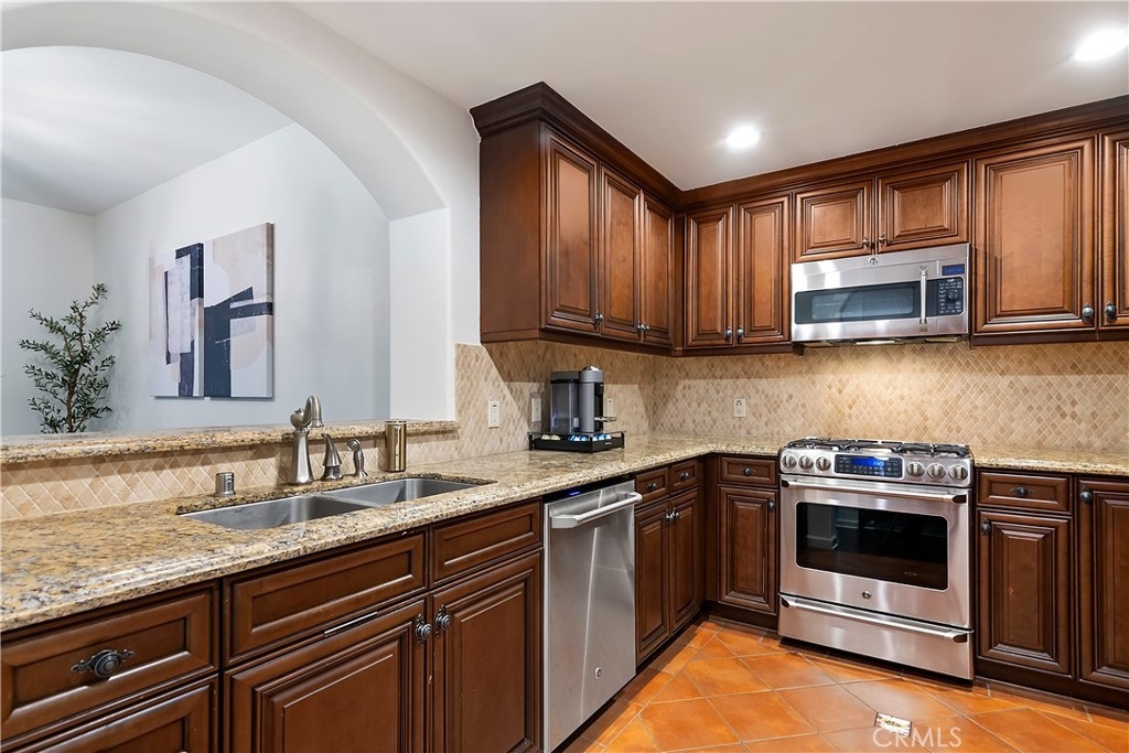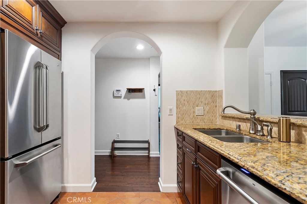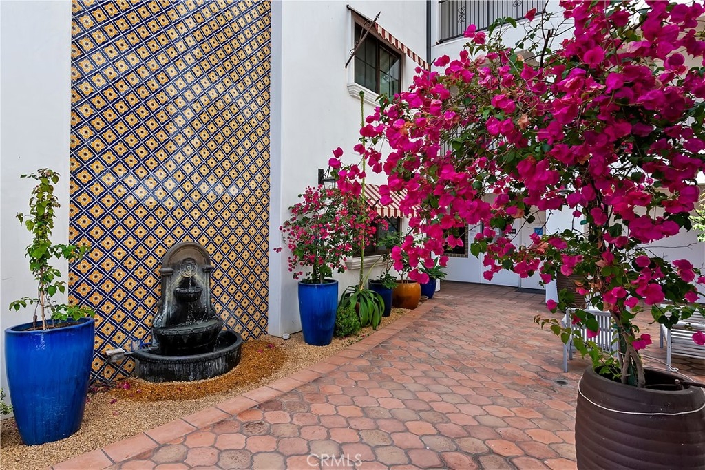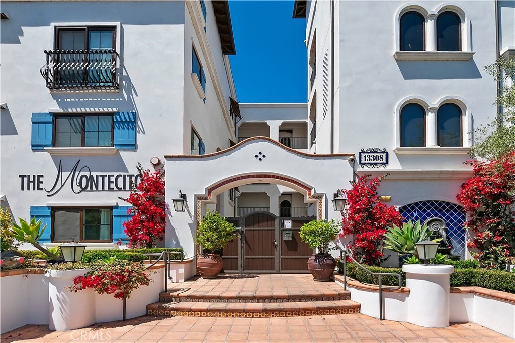 Welcome to the Montecito, a contemporary, Spanish-style building unlike any other in the area. Graced with tasteful archways and vibrant bougainvillea, you feel as though you've stepped into a vacation villa in Santa Barbara. This stylish unit features hardwood floors, built-in shelves, tasteful fixtures, a lovely fireplace and ideal outdoor space. The luxurious primary suite has beautiful windows, two closets and a pristine primary bathroom with double sinks and a separate tub and shower. There's a large open kitchen with stainless steel appliances, granite counters and a serving window that opens to the dining area making it perfect for entertaining. The bright living room features a fireplace and large sliding doors leading to the pretty patio which just screams "mimosa and brunch." There is no shortage of sunlight and fresh air wafting through the unit. In addition, the building includes an appealing gym with updated equipment. There are two tandem parking spaces with room for additional storage and ample guest parking. This prime location is a block from Ventura Blvd., so you can take an easy stroll for coffee, delicious dining and shopping.