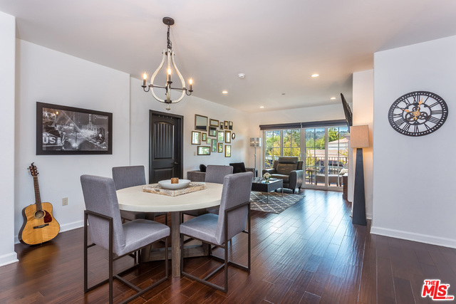 Slick contemporary unit at The Montecito, a stunning newer-construction Spanish style condo development in Sherman Oaks, ideally located near Ventura Blvd and the Studio City boundary line on a quiet street with an abundance of parking. This stylishly-appointed condo has an endless amount of features to satisfy the most discerning buyer, including a private balcony, southern exposure with views of the hills, a perfect open floor plan with large breakfast bar, two bedroom suites separated by the main living area, a powder room for guests, in-unit laundry, gas fireplace, a walk-in closet in the master bedroom with custom shelving, an oversized shower and separate spa tub in the master bath, a tankless water heater, and more. Intricate architectural detailing is noted throughout the complex, which features an inviting courtyard with fountain, fully-equipped gym and incredible curb appeal.