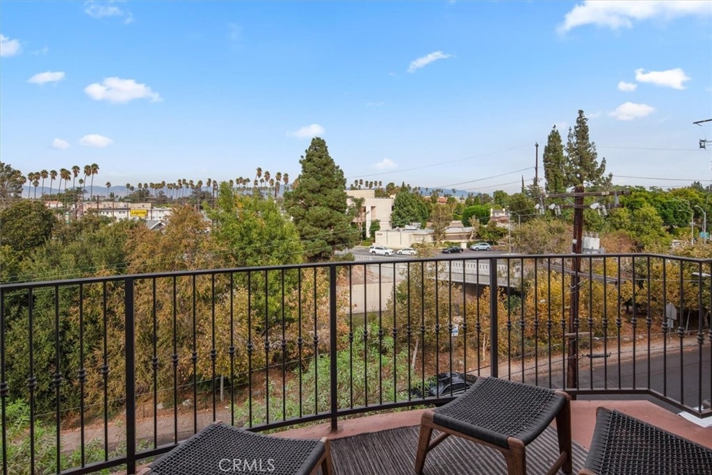 Welcome to this luxury condominium located in the “Montecito” a Santa Barbara Spanish inspired development built in 2014. This top floor, end unit boasts 3 bedrooms, 3 full bathrooms plus a Den in 2021 sq ft with a light-filled spacious open floor plan. Expansive Living room has fireplace and large balcony with beautiful views of the mountains and treetops. Granite Kitchen with breakfast bar comes equipped with GE stainless steel appliances and custom wood cabinetry. A separate den/family room is the perfect spot to unwind. Gorgeous Master Suite has treetop/mountain views, dual vanity, and jetted spa tub. Two additional bedrooms are spacious. Features include wood flooring throughout & character rich arched doorways. This smaller newer development has controlled security access, a resort style courtyard with fountain water feature, lush manicured landscaping and a fully equipped gym/exercise room. This unit comes with two separate parking spaces (not tandem) in secured garage and plenty of parking for guests. Located in the highly acclaimed Dixie Canyon Charter School district and steps from Ventura Blvd with all it has to offer. This is a very special home in a fabulous location!