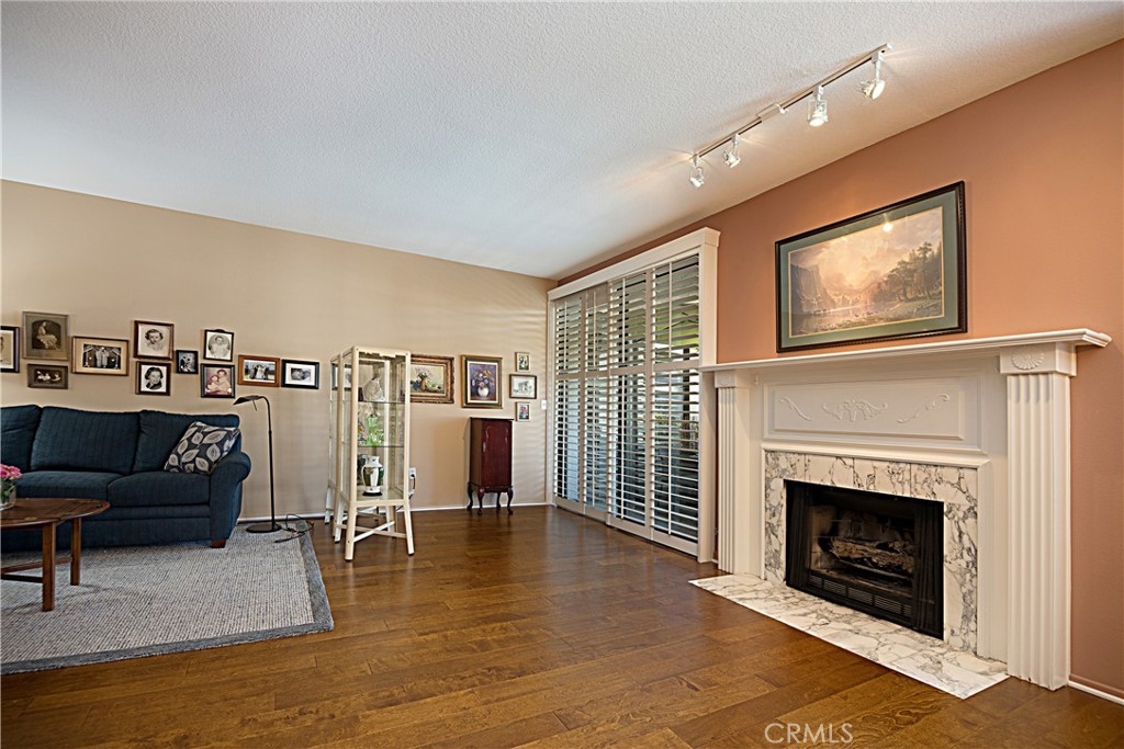 Welcome home! This stunning and spacious condo offers 2 bedrooms, 3 bathrooms, living room with fireplace, dining room, light and bright eat-in kitchen, wet bar, in-unit laundry and more. The primary, sunlit bedroom is gorgeous with a cozy sitting area, walk-in closet and en suite bath with dual sinks, soaking tub and separate shower. The second bedroom also features an en suite 3/4 bath and large closet. Beautiful wood floors and plantation shutters are found throughout. This condo is at the rear of the building and is an end, corner unit with a lovely west-facing balcony. The security building offers tandem parking spots, a personal storage shed, pool, spa and gym and is located on a tree-lined cul-de-sac. Don't miss this opportunity to live close to outdoor cafes, upscale shopping and houses of worship.