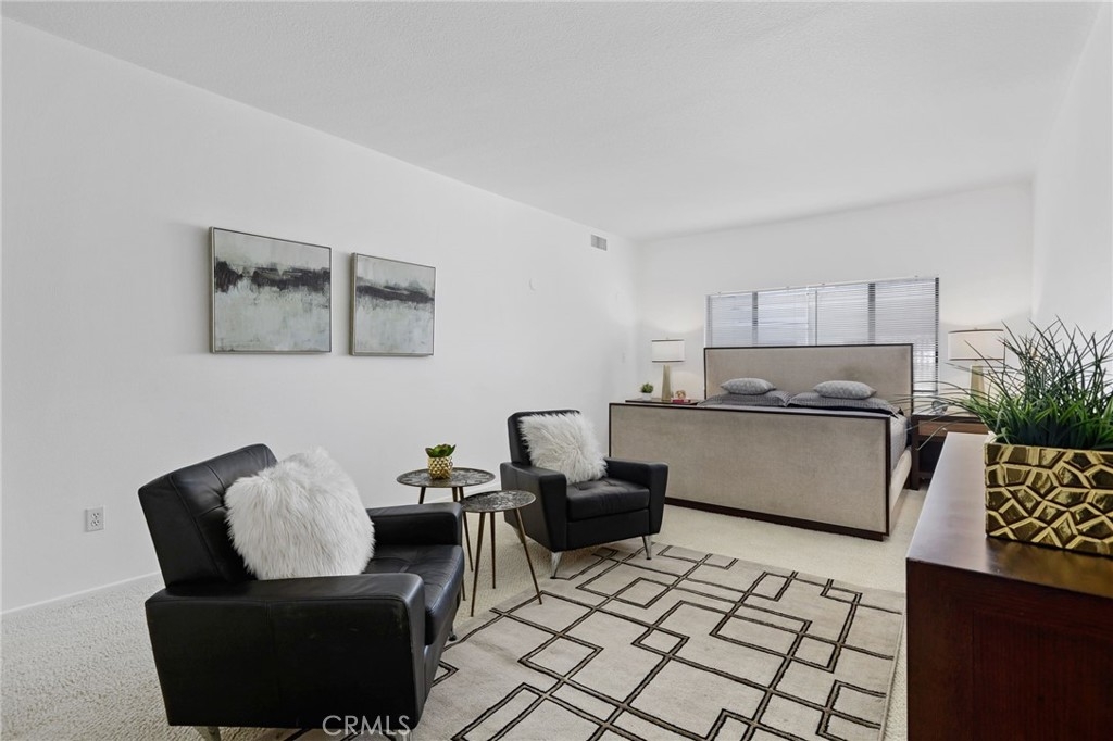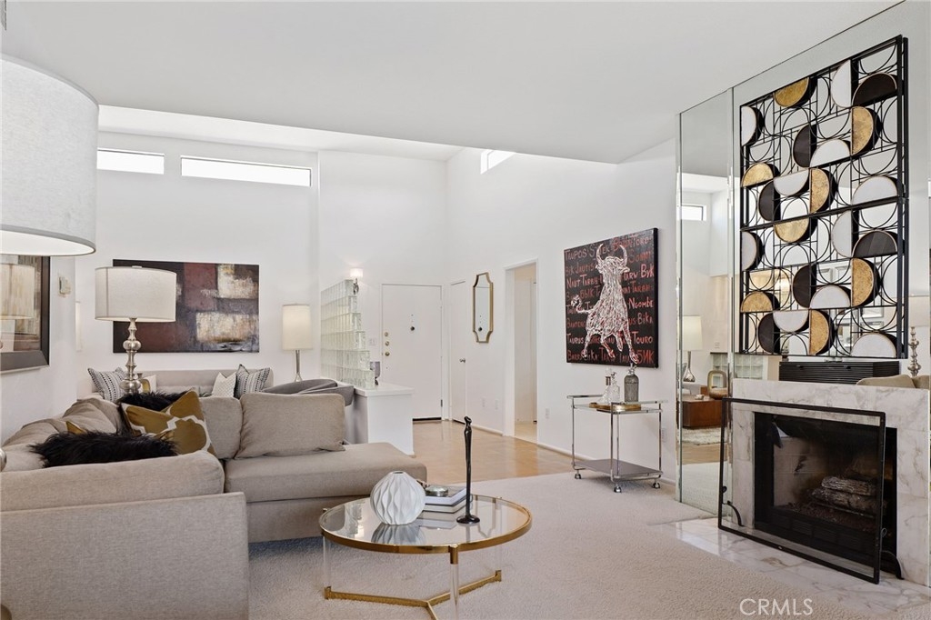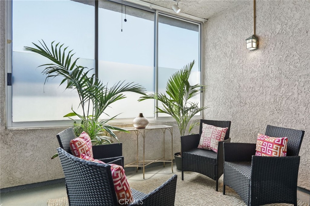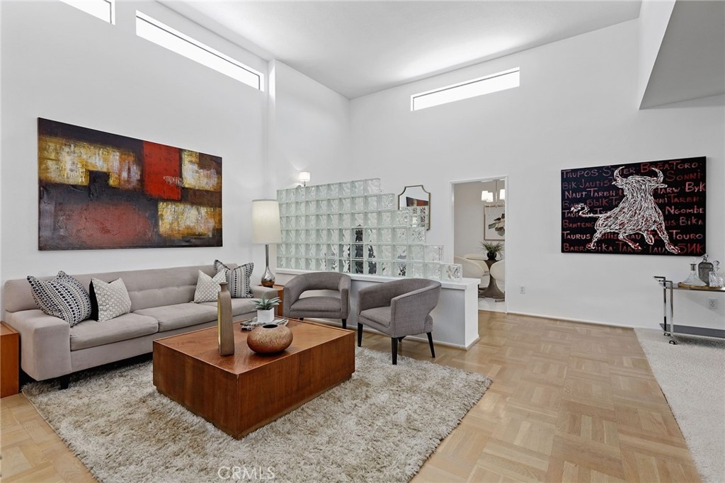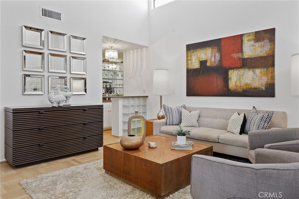 Opportunity knocks! Super sharp spacious one level contemporary third floor penthouse style unit. Dramatic high soaring ceilings, elegant, wide formal entry is accented with a custom glass block divider and wood floors, light and bright rooms, open, flowing floor plan, huge living room and formal dine are great for entertaining, large glass sliders open onto a peaceful patio, cozy den with skylight features a wet bar with granite counter tops, galley style kitchen has tons of storage, fabulous master with relaxing sitting area, large walk in closet, second good sized bedroom has its own bath and walk in closet, washer/dryer in the unit, new lighting fixtures, newly painted walls. Amenities in this quiet, well maintained building include a pool, spa, gym, and sauna, two tandem parking spaces. Located on a tranquil, treed lined cul-de-sac street in prime Sherman Oaks neighborhood. Close to restaurants, shopping, easy access to the 101 and 405 freeways. Tremendous offering!