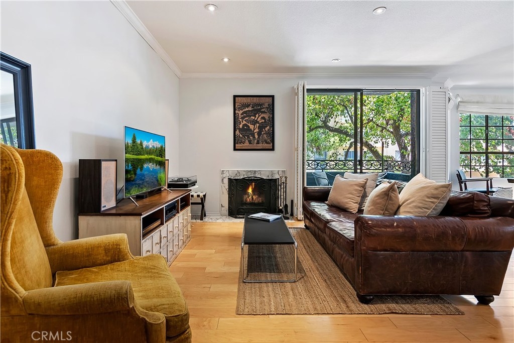 OVERSIZED, light, bright, front facing unit sharing only one common wall in the heart of Sherman Oaks! Spacious open floor plan features a living room/dining room with engineered hardwood floors, recessed lighting, a gas fireplace and abundant windows overlooking a balcony & trees. A sizable cooks kitchen with tile counters, gas cooktop, oven & microwave AND cozy breakfast area. The very large master suite features 2 closets -one being a "walk in closet", a large master bath with separate tub, stall shower and linen closets. There is an additional 1/2 bath as well. Other features include stackable laundry IN the unit, 2 tandem parking spaces with a storage shed in the garage. The building amenities include a swimming pool, spa, sauna, gym/rec. room & earthquake insurance. This charming single level unit situated in a well maintained building, located on a cul-de-sac is not to be missed!!!