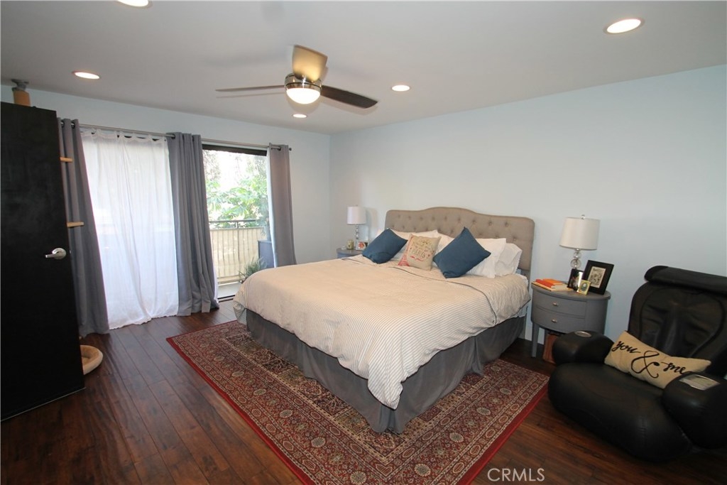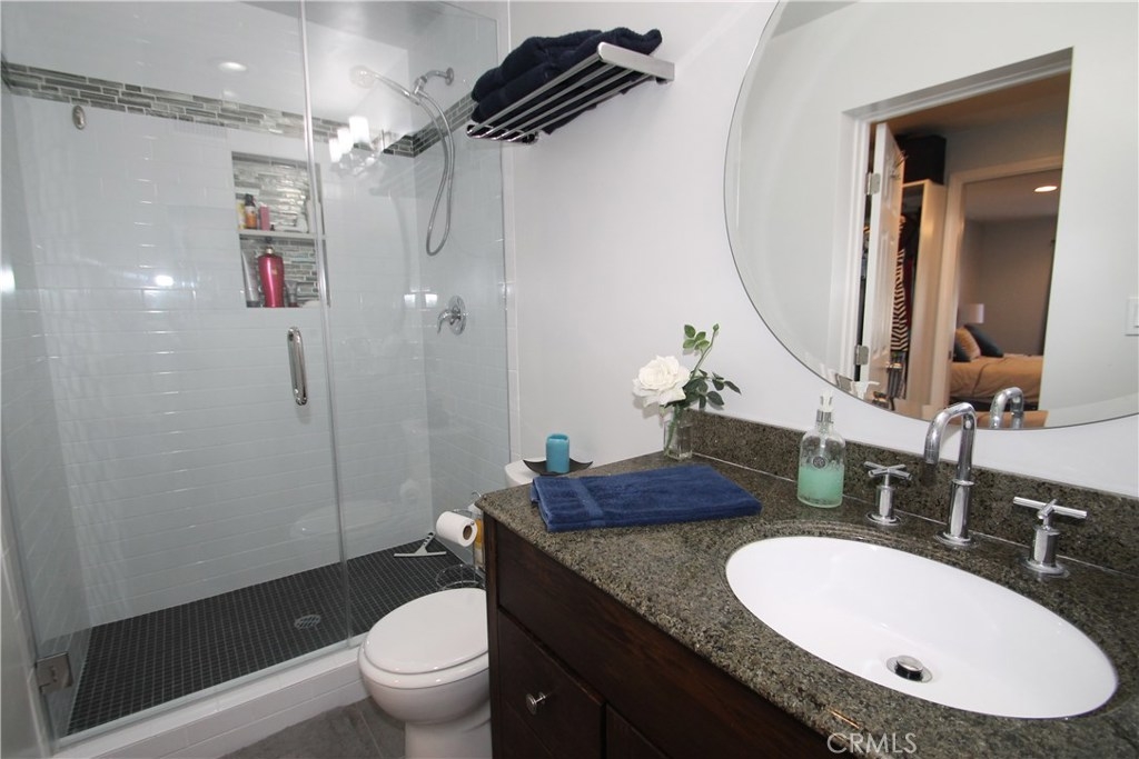 Take a detailed video tour of this property by entering the address. A rare, remodeled 3 bed, 3 full bathroom corner unit with only one common wall, on a Sherman Oaks cul-de-sac with a City park one minute away. This unit is a gem - lovely kitchen with black granite counter tops and appliances, breakfast bar, a cute dining area, large living room with sliding glass doors to an enormous balcony running the entire width of the unit with pleasant leafy views. The large master bedroom has a double walk-in closet and a gorgeous en-suite bathroom. On the other side of the unit are two additional bedrooms and bathrooms, one en-suite. Other features include excellent recessed lighting, hardwood floors everywhere except the tiled kitchen and bathrooms, a useful storage room by the front door, motion detecting and other Lutron light switches and an expensive Nest system to control the HVAC, remotely, if needed. Two car parking and additional storage are in the secure garage, the building has EQ insurance and the HOA expects to approve of building beautification during 2019. Finally, If you’re looking for a studio, the beautiful master bedroom was used by the previous owner, a relative of Glen Campbell, as a sound studio and still has its $70,000 of sound proofing and insulation.