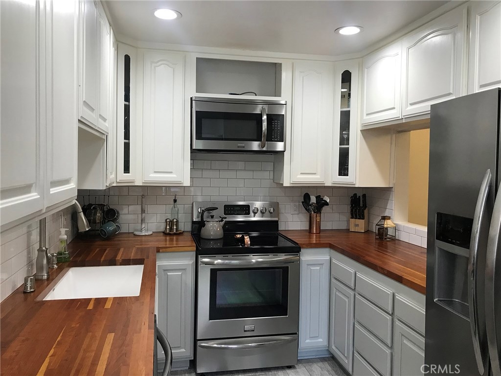Price Reduced! The property fell out of escrow-buyer did not perform. Great value for the proximity to Ventura Blvd.!! You'll be walking distance to some of the most popular restaurants, shopping, transportation and destinations on the Blvd. Check out this Gorgeous townhome with a charming private patio with 2 bedroom and 2 bathrooms in a fantastic Sherman Oaks neighborhood. This is an interior unit that is within a secured community. Open living and dining area with laminate wood flooring with a breakfast bar and updated kitchen with charming butcher block counters, updated backsplash, recessed lighting and in-unit laundry. All appliances are included. The upgraded half bath also has butcher block counters and there is upgraded tile in the upstairs bathroom. Two large closets in the master suite with lots of storage. This is an end unit and therefore it has side windows that let in lots of natural light in the kitchen and master bedroom. There are beautiful plantation shutters throughout. Well run HOA with dues that cover water, electric, earthquake insurance, well maintained BBQs, outdoor dining areas, a rec room with a pool table, kitchen and bathroom, heated pool and spa, lighted subterranean parking and trash. Must see to appreciate how charming and immaculate this home is.