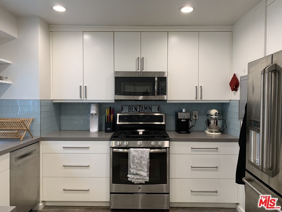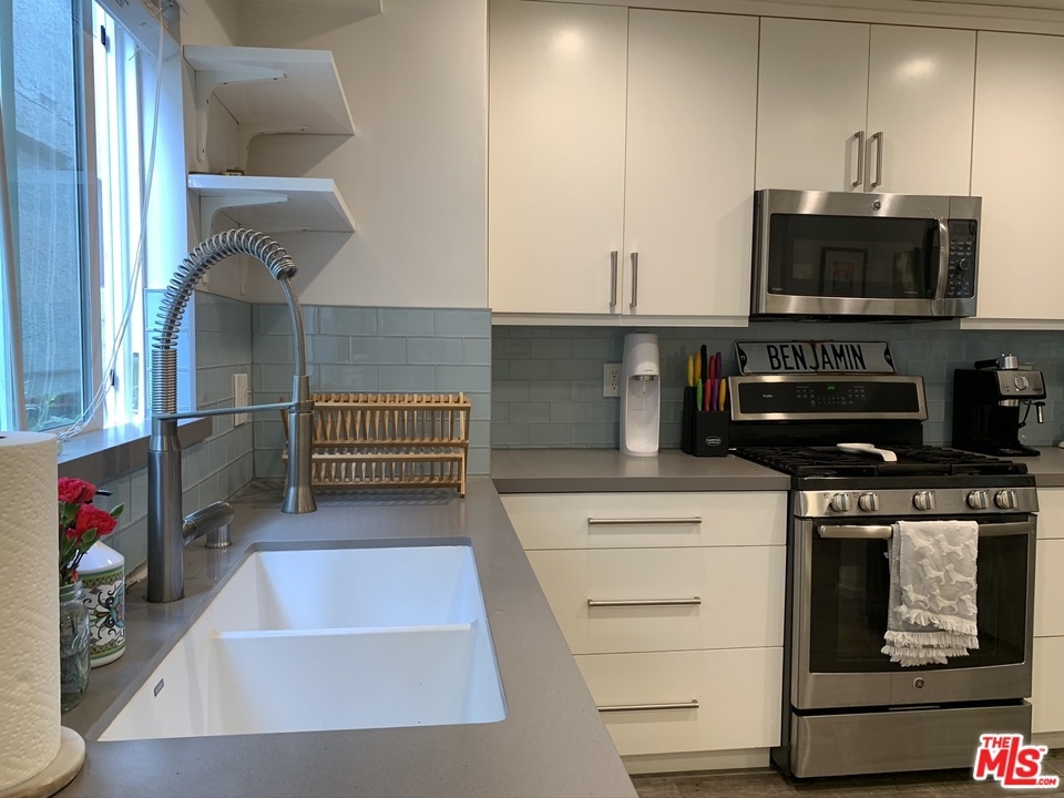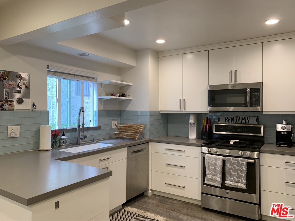 Sherman Oaks! South of Ventura! Great Location! Beautiful updated bright 2 Story Townhouse, LOW HOA Dues $250/m & POOL. Gated entry to your big private entertaining patio.Recessed lighting, wood plank porcelain tile flooring throughout the open/spacious first floor. Living room has wall of windows with views of your private patio. Large nook under the stairs can be used for entertainment equipment, kid's play, storage, pet area. Your formal dining area is off the living room and connects to the top of the line beautiful Fully Remolded kitchen and breakfast bar. Quartz countertops, glass tile backsplash, custom cabinets, GE stove, microwave/convection oven, Bosch dishwasher. Built-in laundry closet, incredible storage & modern bathroom complete the 1st floor. Upstairs spacious master has large picture windows and loads of closets. Large 2nd bedroom with big closets. Updated master bath with a stunning Deep Slipper Tub and separate shower.Bonus space in attic. Updated Plumbing! Amazing