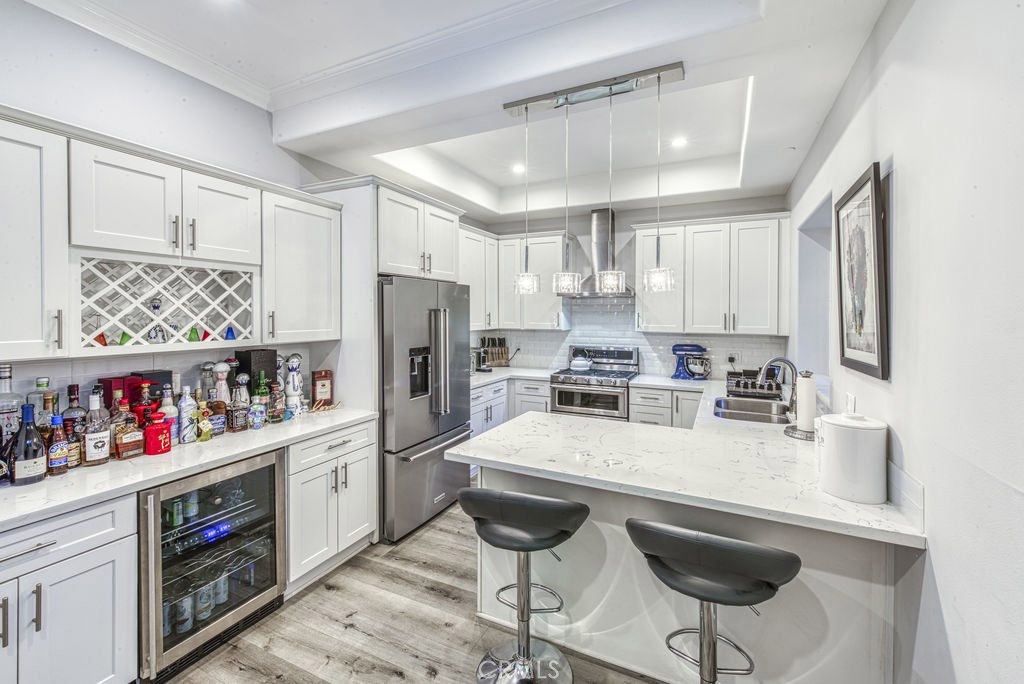This is an amazing unit that you will not want to miss! Gated community and controlled garage access leads to the safety of this beautifully upgraded townhouse. Open the front door and find yourself in a light and bright open layout. Living room has large windows and slider doors to individual balcony's that let in all the natural lighting or snuggle in on a cold evening in front of your fireplace. This layout is perfect to entertain in! The kitchen is immaculate with sit at breakfast counter, extra storage and openings for the perfect bottle of wine and bonus there's a wine fridge! Great sized walk-in pantry. Stairs lead you up to the next level with all bedrooms. Master bedroom has private master bath with double sinks, spa like walk in shower and cozy balcony right off the bedroom. Additional full bath is Jack & Jill between the final 2 bedrooms Either head upstairs to the separated loft with private roof top deck to relax or head outside to the common area to take a dip in the wading pool. Stairs down from main floor will grant you access to your direct access 2 car garage with perfect sized tile floored area for your at home gym.