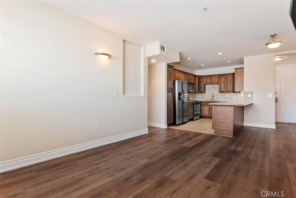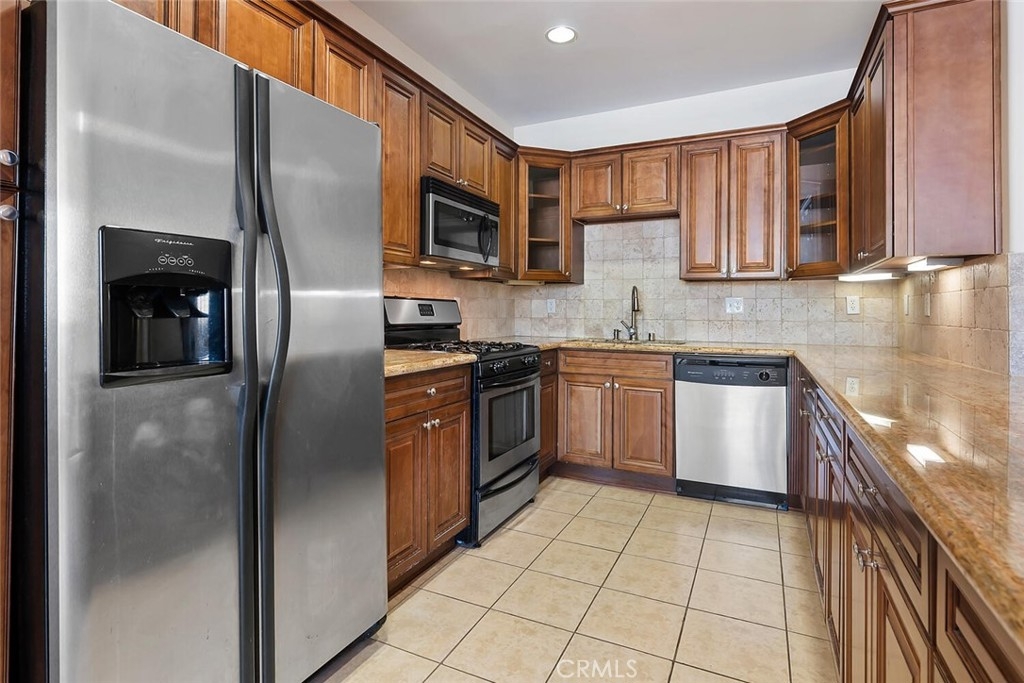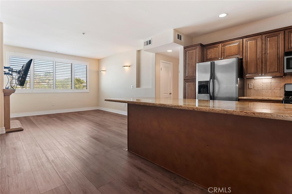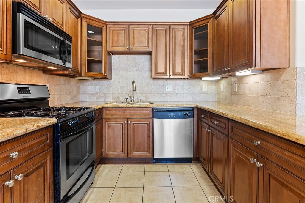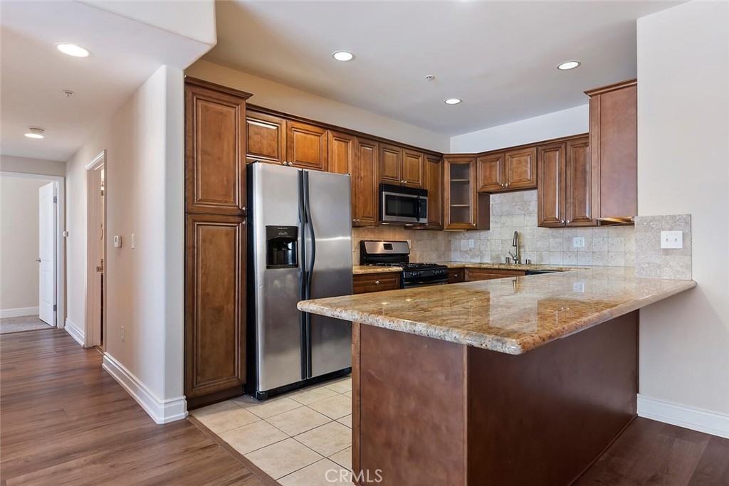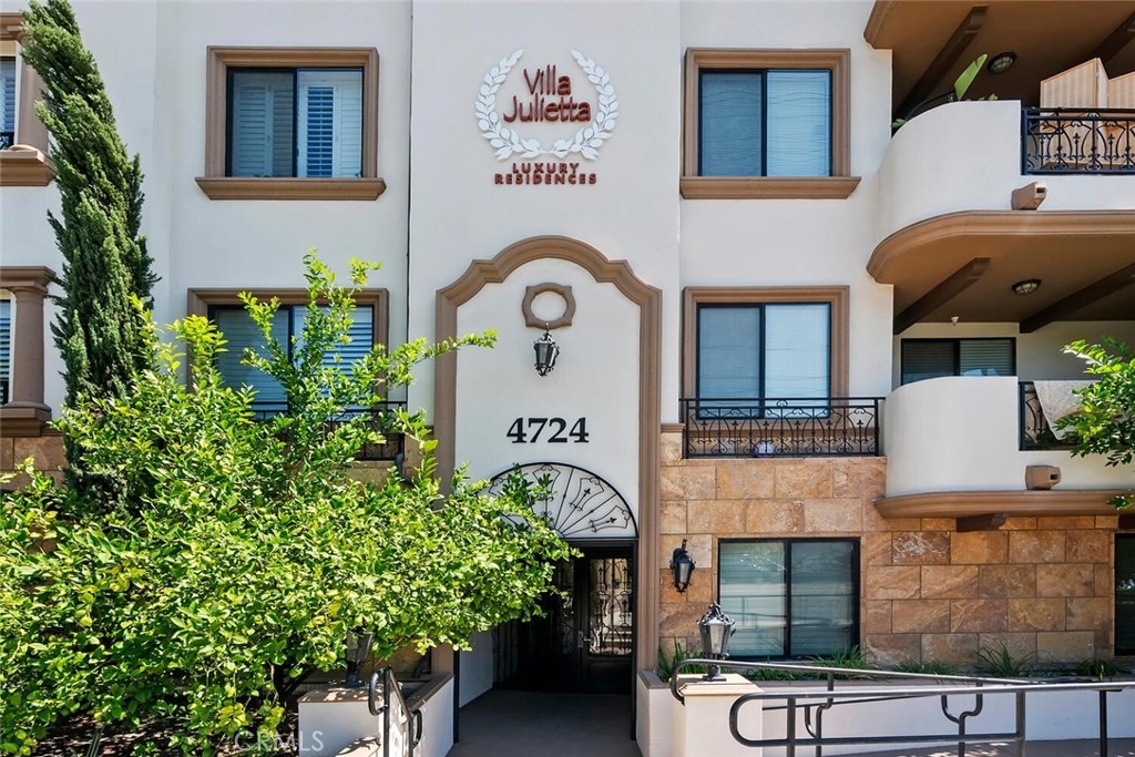 Desirable Sherman Oaks location! 2/bed, 2/bath unit with 1070 Sq. ft. located on the top floor in the rear corner of Villa Julietta which was built in 2009. The open floor plan creates a warm and spacious atmosphere. The living area has gorgeous luxury vinyl plank floors, custom plantation shutters throughout a fireplace with custom mantle and beautiful sconce lighting. The kitchen would please any chef with generous maple cabinets, granite counters, stainless steel appliances and a large breakfast bar with an extra seating area. The primary bedroom has an in-suite luxurious bath with dual vanity, over-sized step-in shower with glass enclosure and a spacious walk-in closet. Balcony access from the primary bedroom with mountain and neighborhood views. Second bath has a tub and shower with granite counters. There is an in-unit laundry area with stackable washer/dryer. Community amenities: Gym with sauna, two baths and spacious outdoor lounge area to relax. Gated and secured entry, elevator, intercom and 2/car assigned garage parking. Conveniently close to Pavilions, Ventura Boulevard shoppings, gourmet restaurants and more. Easy access to 101/405 freeways.