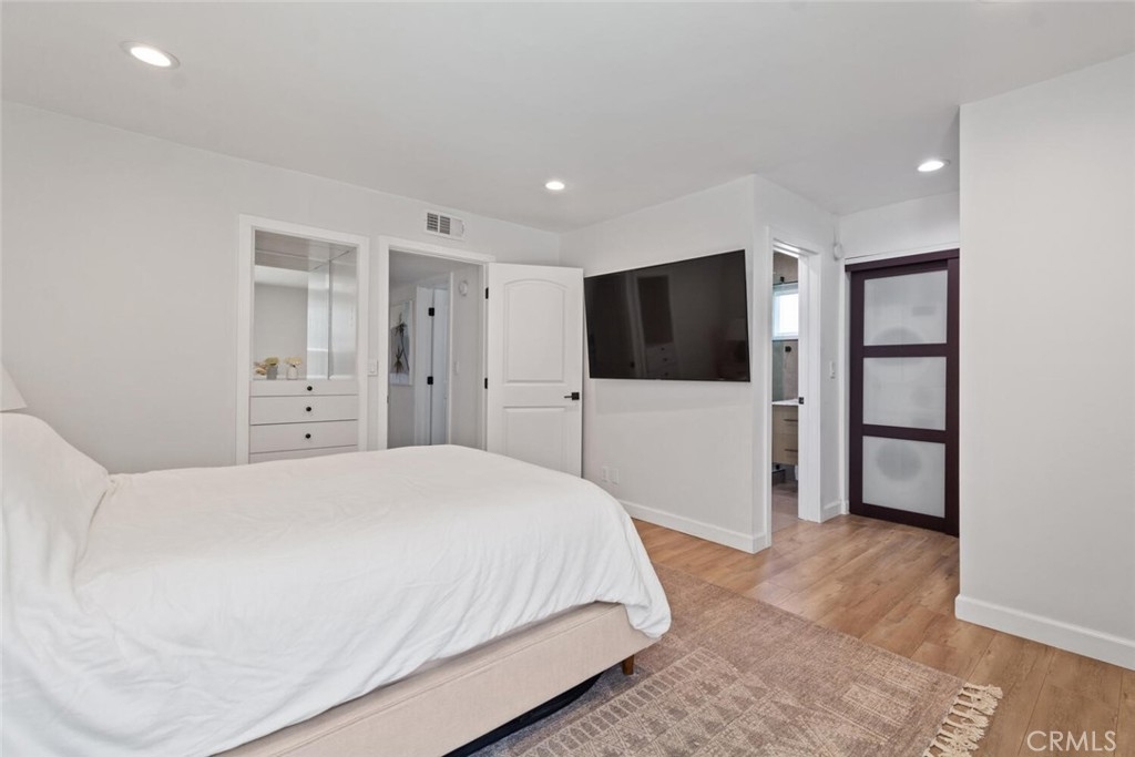LOCATION, LOCATION, LOCATION, with a HUGE PRICE REDUCTION!! Stylish Renovated Condo in the Heart of Sherman Oaks. Welcome to this beautifully updated condo, offering modern living in one of Sherman Oaks’ most desirable locations. This tastefully renovated 2-bedroom, 2-bathroom home features an open floor plan with contemporary finishes and thoughtful upgrades throughout. Step into the inviting living room highlighted by a custom accent wall that adds a touch of elegance and warmth. The open-concept kitchen is a chef’s dream, complete with quartz countertops, a large farmhouse sink, newer stainless-steel appliances, refrigerator, stove, dishwasher, microwave and washer/dryer, which are all included. It also features, soft-close cabinetry with convenient pull-out drawers. The spacious primary suite includes his-and-her closet space and a stunning ensuite bathroom with a sleek stand-alone shower, floating vanity, and built-in shelving. The second bedroom offers versatility—perfect as a guest room, home office, or both—complete with a custom built-in desk and shelving. Additional features include an updated hallway bathroom with shower/tub combo and modern vanity, recessed lighting throughout, updated flooring, In-unit washer and dryer, Alexa smart home system and a private balcony overlooking the heated pool. The secure building offers 24-hour surveillance, intercom entry, underground parking, and elevator access. WATER INCLUDED IN THE HOA!! Located just moments from popular shops, restaurants, top-rated schools, and about a one-minute walk to a great park, that offers plenty pf parking. This condo is the perfect blend of style, comfort, and convenience. Don’t miss this opportunity to own a turnkey home in the heart of Sherman Oaks!