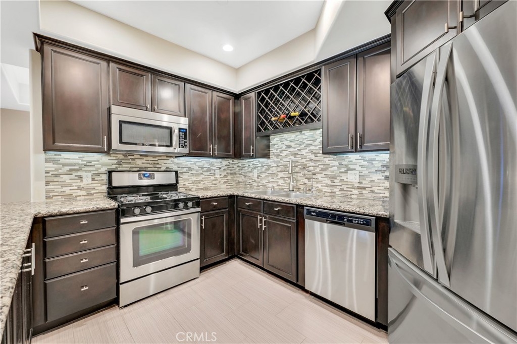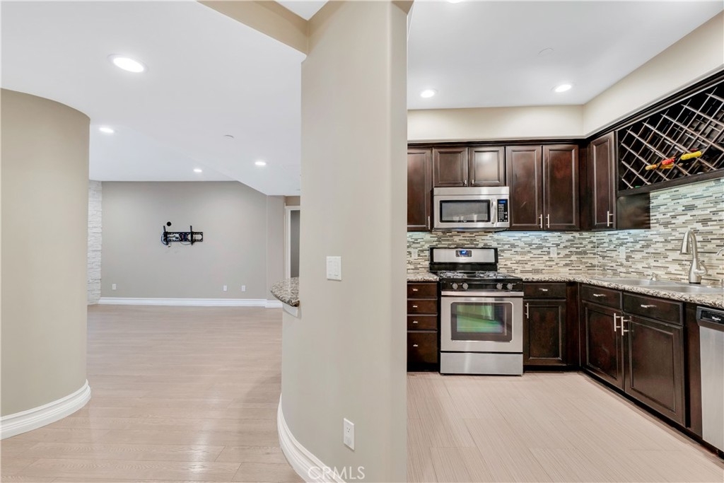 This luxury 2 bedroom, 2.5 bathroom condo offers 1,300 sf of living space with an open flow, high ceilings, beautiful flooring, tray ceilings, built-in niches, and recessed lighting throughout. A formal entry opens to the kitchen which showcases granite countertops, mosaic tile backsplash, rich wood cabinets with built-in wine storage and undercabinet lighting, stainless steel appliances, Delta touch-tap activated faucet, and curved breakfast bar the opens to the living room and formal dining area. The living room features a corner fireplace with floor-to-ceiling light stack stone surround and sliding glass doors that open to your private balcony with storage closet. A powder bath is convenient for guests, and the secondary bedroom enjoys access to the full en-suite bathroom. A generous sized primary suite boasts ample closet space with custom built-ins, and an en-suite bathroom with led lighting behind mirror and under floating vanity, soaking tub, and separate glass enclosed shower. In-unit stackable laundry is nicely tucked away behind a closet door. Highlights of the home include Lutron Smart Lighting, Nest thermostat, WiFi boosters, and water filtration system. The pristine HOA community includes a community sundeck, a central courtyard with fountain, and the unit includes 2 tandem parking spaces, plus a dedicated storage area. Excellent location near parks, shopping & dining, including the Sherman Oaks Galleria, short distance to trendy Ventura Blvd, and convenient access to the 405 and 101 freeways.
