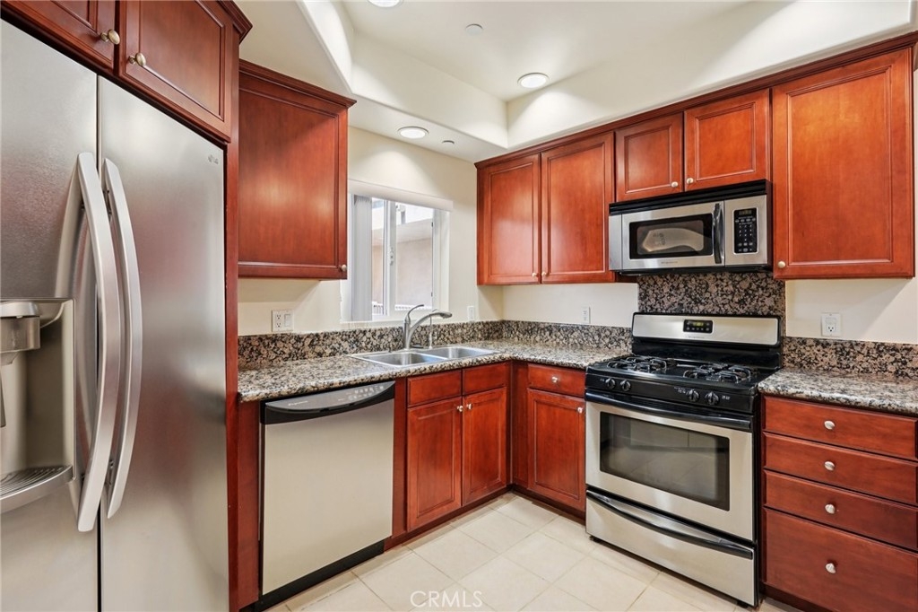 Welcome to Villa Trevi, a gated Tuscan-style community in the heart of Sherman Oaks! This beautifully maintained 2-bedroom, 2.5-bath condo offers over 1,300 square feet of thoughtfully designed single-level living space. Inside, you’ll find rich hardwood floors (2022), high ceilings, recessed lighting, and a cozy gas fireplace—all set against freshly painted interiors that give the home a bright, refreshed feel. The open-concept living and dining areas flow to a private balcony offering a peaceful outdoor retreat. The kitchen features granite countertops, a gas range/oven combo, and other stainless steel appliances, with a breakfast bar perfect for casual dining or entertaining. Both bedrooms are en-suite and situated on opposite ends of the unit for optimal privacy. The primary suite offers a walk-in closet, soaking tub, dual sinks, and a separate shower. There's also a guest powder room, in-unit laundry, and ample storage throughout. Enjoy resort-style amenities including a rooftop deck with BBQs and city views, two peaceful courtyards with fountains and shaded seating, and gated subterranean parking with two tandem spaces, EV chargers, and secured personal storage. HOA dues cover water, trash service, and earthquake insurance. This home is located just minutes from Ventura Blvd, Sherman Oaks Galleria, Costco, Target, restaurants, and fitness centers, with convenient access to the 101 and 405 freeways. It’s also zoned for Kester Avenue Elementary/Magnet School, a nationally recognized Blue Ribbon and California Distinguished School serving TK–5. This turnkey condo offers the ideal combination of location, lifestyle, and low-maintenance living. You don’t want to miss this one—come see it for yourself!