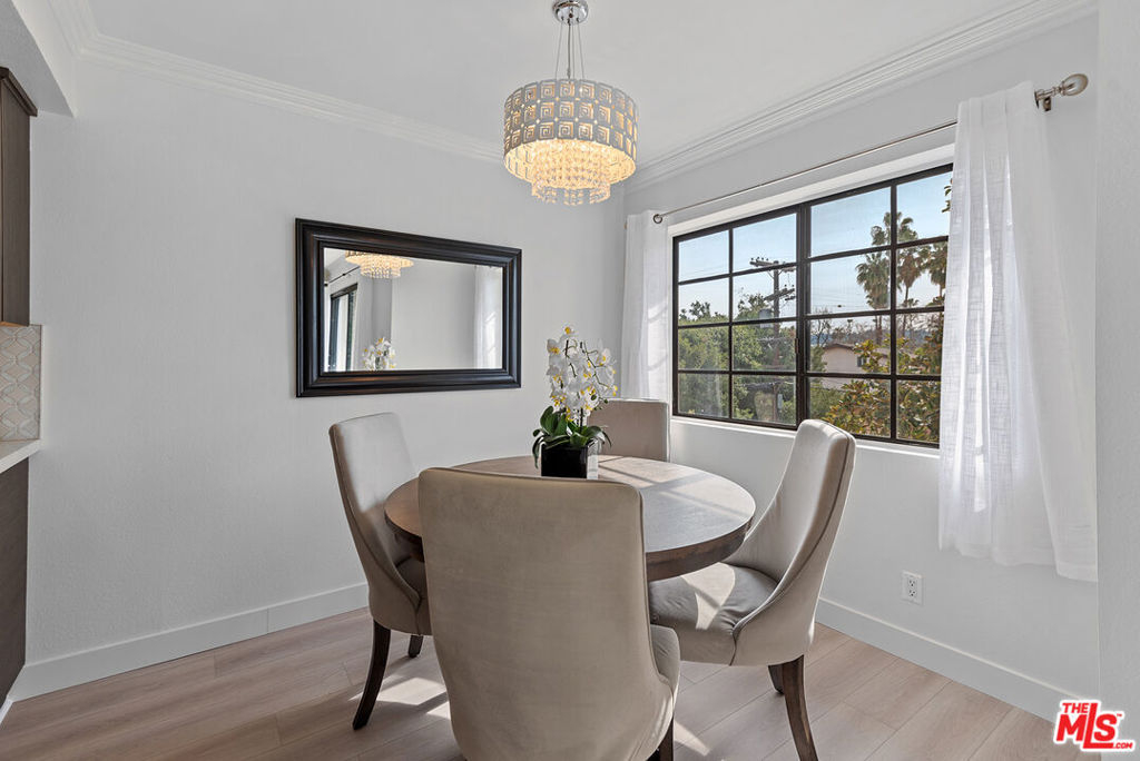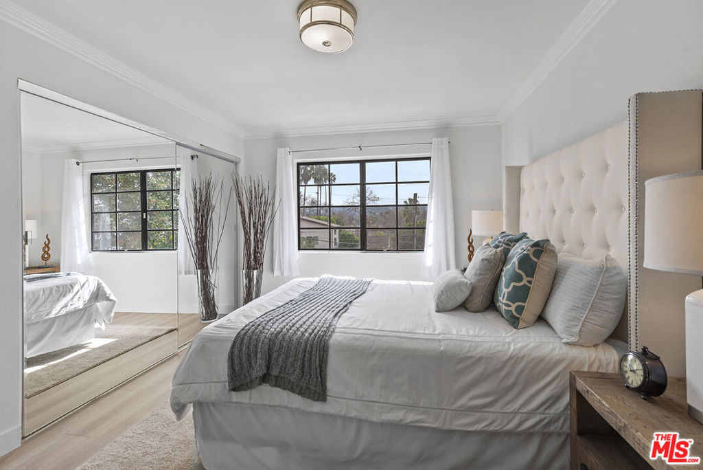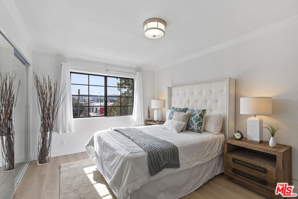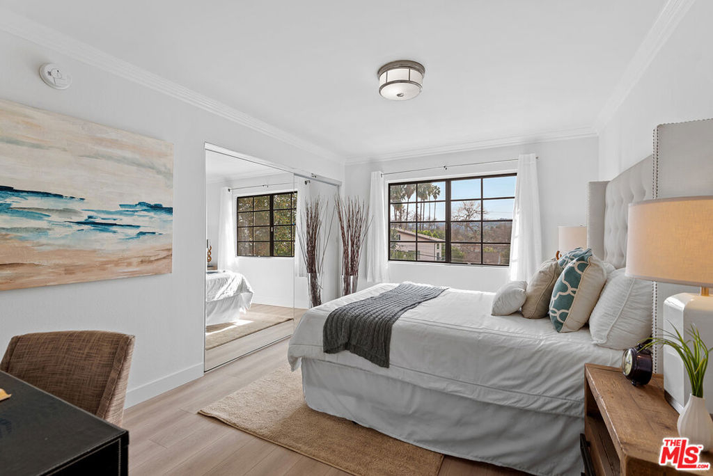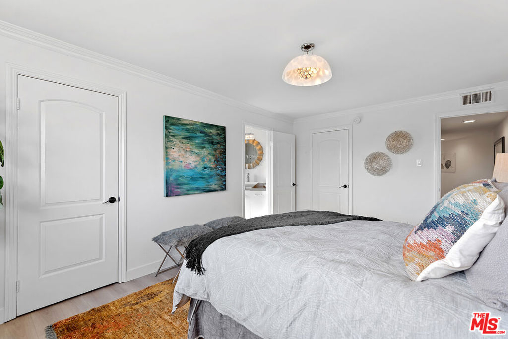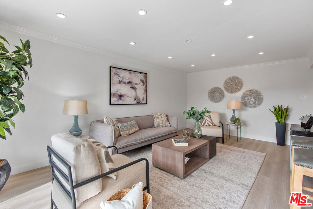 You will love this adorable, top floor unit! Recently redone and freshly painted with new wood-look plank flooring. Light, bright, open concept living room has South-facing balcony and mountain views. Smooth ceilings with recessed lights. Kitchen with stainless steel appliances, quartz countertops and breakfast bar. Hallway leads to side-by-side laundry area, 2nd bedroom with mirrored closet and designer 2nd bathroom with shower. Large primary suite has 2 separate closets and updated spa-like bathroom with frameless shower and rain shower head. Controlled access building, tandem parking. Centrally located near 101 & 405 freeways, close to Ventura Blvd., Fashion Square Mall and the Sherman Oaks Galleria.