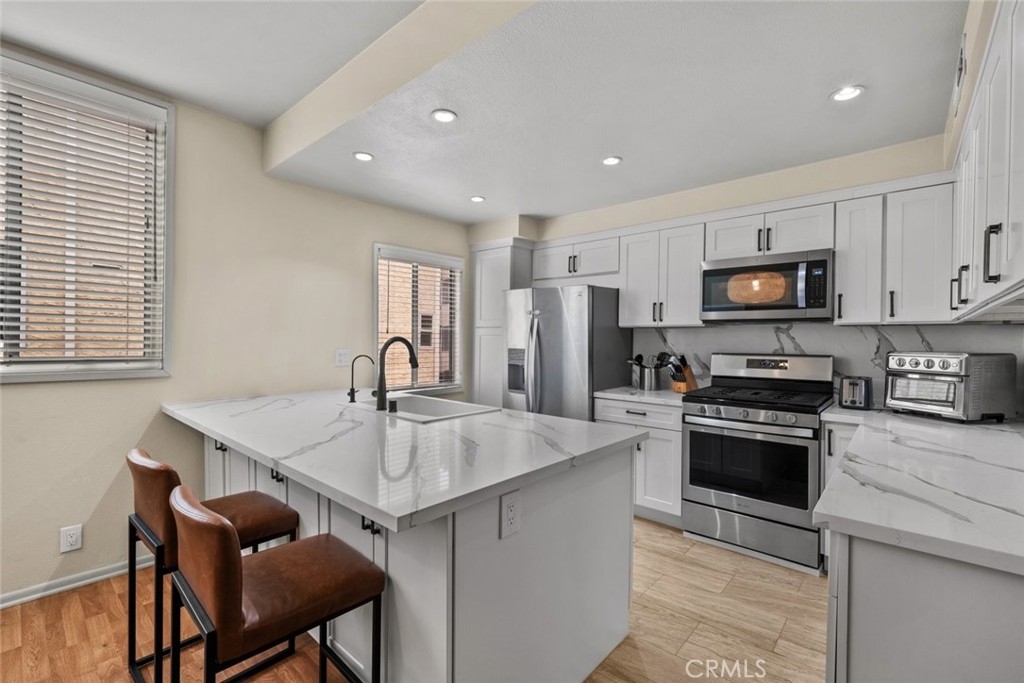 Immerse yourself into the refined comfort of 4656 Willis Ave, nestled in the vibrant heart of Sherman Oaks. This exquisite townhouse boasts 2 bedrooms, 3 bathrooms, and 1,671 square feet of elegant living space. As you enter, a spacious living room beckons, adorned with a wood-burning fireplace and sliding doors leading to your private balcony, perfect for serene moments or entertaining guests. A dry bar adds a touch of sophistication, ideal for unwinding or hosting soirées. Adjacent is your attached garage, offering 2 parking spaces and laundry facilities for added convenience. Ascend the charming small staircase to discover a dining area adorned with a full-wall mirror, enhancing the sense of luxury. Across, carpeted stairs lead to the second level, where the first bedroom awaits, illuminated by natural light and features a sliding mirror door closet. A nearby bathroom offers a shower-in tub for relaxation. The primary bedroom exudes tranquility, providing ample space and an en-suite bathroom. Storage abounds, with a vanity area and walk-in shower, separated by a discreet door for privacy. Descend to the kitchen area, where beauty meets functionality. Adorned with stunning countertops and abundant cabinets, the kitchen is equipped with modern appliances including a dishwasher, convection oven, and gas range stovetop. A bar with additional seating invites socializing, while adjacent space sparks creative endeavors. Convenience meets comfort with recessed lighting, ceiling fans, and lofty ceilings throughout. Nearby, discover a convenient bathroom with toilet and sink. Nestled in a community offering a gated pool and easy freeway access, this home is surrounded by an array of dining options, recreational facilities, and parks. Don't miss the opportunity to make this stunning residence your own.