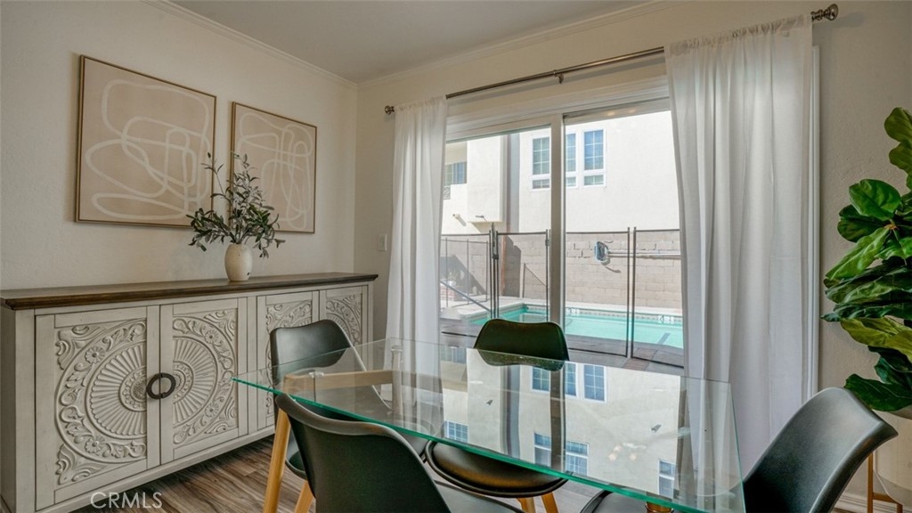 Welcome to this beautifully updated 3-bedroom, 2.5-bath townhome, located in the heart of Sherman Oaks. This home offers an open floor plan, featuring a living room with plantation shutters, recessed lighting, and sleek vinyl flooring. The modern kitchen boasts new countertops, a stylish backsplash, a farmhouse sink, stainless steel appliances and ample bar seating. An adjacent versatile room with crown molding can be used as a den, office, or formal dining space and overlooks the tranquil community pool, outdoor patio, barbecue area, providing easy indoor-outdoor flow. There is an updated powder room and 2 storage closets conveniently located on this floor. Upstairs, you’ll find a spacious primary suite featuring a walk-in closet and an en suite bathroom with new tile flooring, vanities and an upgraded shower. Two additional bedrooms share an updated bathroom with beautiful tiled floors and a new vanity. The bedrooms are located opposite the primary suite, providing additional privacy. A stackable washer and dryer are located on this level for ease of use. Ideally situated within walking distance to Riverside Elementary School, with easy access to the freeway and shopping at Whole Foods. The 2-car shared tandem garage provides parking with ample storage space, adding to the convenience of this home. The low monthly HOA includes utilities such as water, trash and sewer. This townhome is move-in ready and waiting for you!