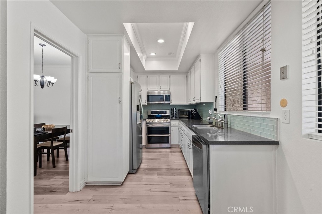 Discover the epitome of modern living at this attractive high ceiling Sherman Oaks single level unit. This meticulously maintained 2-bedroom, 2-bathroom condo offers a perfect blend of style and comfort. The open-concept living space features sleek hardwood floors, a contemporary kitchen with stainless steel appliances, and a cozy dining area. Large windows bathe the interiors in natural light, highlighting the chic design. The master suite provides a tranquil retreat with its spacious layout and en-suite bathroom. The second bedroom is versatile, ideal for guests or a home office. Step outside to a private balcony, perfect for enjoying your morning coffee or unwinding after a busy day. Conveniently located, this condo offers easy access to Sherman Oaks’ vibrant amenities, trendy boutiques, and popular dining spots. With secure parking and a well-maintained community, 13214 Moorpark St #108 promises a lifestyle of comfort and convenience.