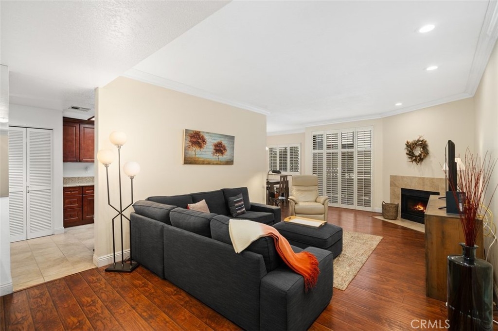 This charming, 2 bedroom/2 bathroom corner unit condo nestled in the heart of Sherman Oaks offers the perfect blend of city living and modern comfort. Located just steps away from the vibrant community atmosphere of LA, this residence boasts a prime location, minutes from the freeway and shopping. As you step inside, you are greeted by an inviting living space adorned with ample natural light and tasteful décor. The open concept layout seamlessly connects the living, dining, and kitchen areas, creating an ideal space for entertaining guests or simply relaxing after a long day by the fireplace or enjoying a drink on your private balcony. The kitchen features granite countertops, stainless steel appliances, and plenty of wood cabinets for all your culinary needs. Whether you’re preparing a quick snack or whipping up a gourmet meal, this kitchen is sure to impress. You’ll find two spacious bedrooms, each offering a peaceful retreat from the hustle and bustle of daily life. The master bedroom boasts a private balcony, a huge walk-in closet and an ensuite bathroom complete with a soaking tub with shower. There is wood flooring throughout the home except for tile in the kitchen and bathrooms. The laundry closet is off the kitchen with a full size washer and dryer. Other features include crown molding in the living areas, new breakers in the electric panel, and plantation shutters. HOA amenities include two pools and spas, a new sauna, brand new gym and a huge club room with a kitchen. There is gated tandem parking for residents for two cars and ample guest parking. HOA dues include internet, basic cable from Direct TV at a reduced rate of $20.67 per month, trash, hot and cold water, earthquake insurance, and building maintenance.
