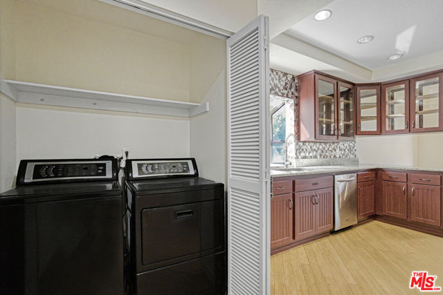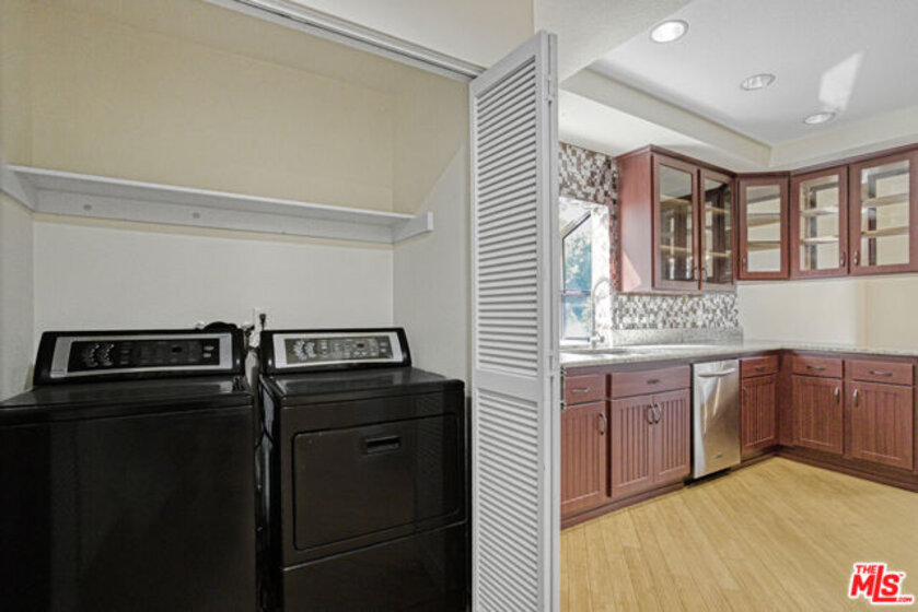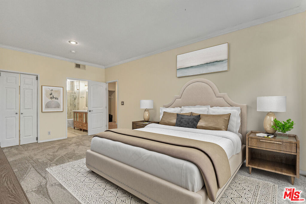 Discover unmatched value and resort-style living in this chic, single-level Sherman Village condo. As a highly desirable corner unit on the outside of the building, you'll enjoy unparalleled peace and privacy with only one shared wall and no foot traffic past your door. Step inside to an impressive open-concept floor plan, bathed in natural light, featuring elegant, recessed lighting and a cozy fireplace that anchors the living space, while treetop views from the picture windows add a serene touch. The large, well-appointed kitchen is perfect for any home chef, and you'll appreciate the ultimate convenience of in-unit laundry. Retreat to the spacious master suite, complete with a huge walk-in closet, a private patio balcony, and a fabulous ensuite bathroom. Your dedicated 2-car tandem parking space is in the subterranean garage below Building C, offering a close and incredibly convenient walk to your unit. This is truly resort-style living with its sought-after community amenities: secure entry, elevators, two sparkling pools, a relaxing spa, state-of-the-art gym, and a recreation room. HOA dues include cable, water, trash, Internet, and earthquake insurance for the building. Enjoy a premium location just walking distance to Ventura Boulevard's best shops and acclaimed restaurants and benefit from easy access to major freeways and the popular Sherman Oaks Westfield mall. Don't miss the opportunity to own this private, perfectly located gem!