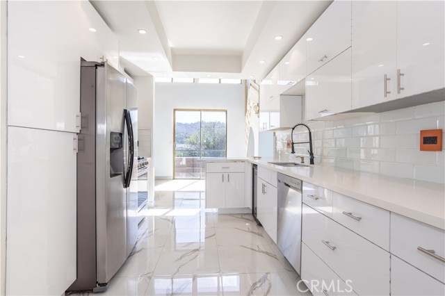Experience elevated living in this top-floor penthouse, completely remodeled with high-end finishes and contemporary design. Soaring vaulted ceilings and abundant natural light fill the open-concept living area, creating an airy and sophisticated atmosphere. Enjoy seamless indoor-outdoor living with a private balcony showcasing views of Ventura Blvd — perfect for morning coffee or evening sunsets. A versatile loft area overlooks the main living space, ideal for a home office, creative studio, or guest retreat. The modern kitchen boasts premium cabinetry, sleek countertops, and stainless steel appliances. Additional highlights include in-unit laundry hookups, luxury flooring, and an unbelievable amount of parking, a rare feature in condo living. Residents enjoy world-class amenities, including multiple resort-style pools, a state-of-the-art gym, sauna, and beautifully maintained grounds. Perfectly located near Ventura Blvd’s shopping, dining, and entertainment, this penthouse combines luxury, lifestyle, and convenience in one extraordinary home.