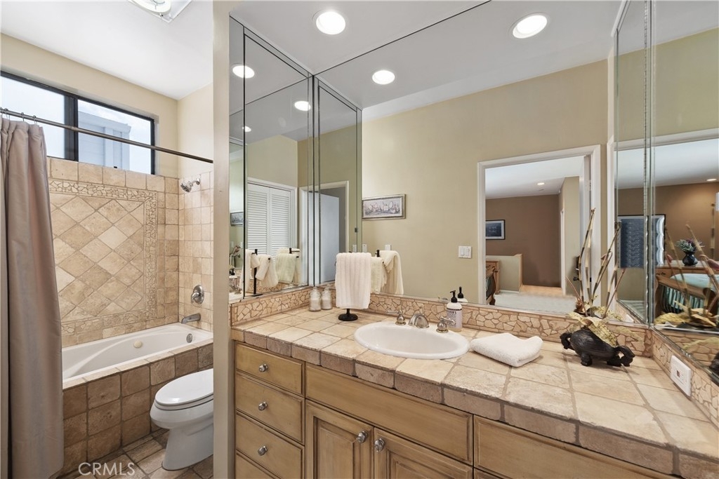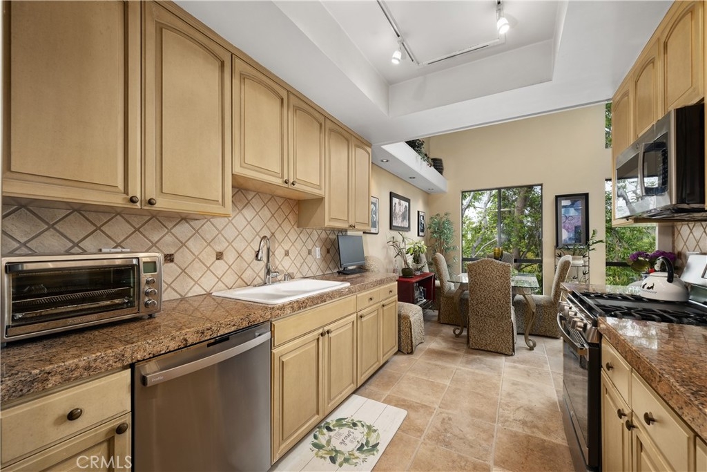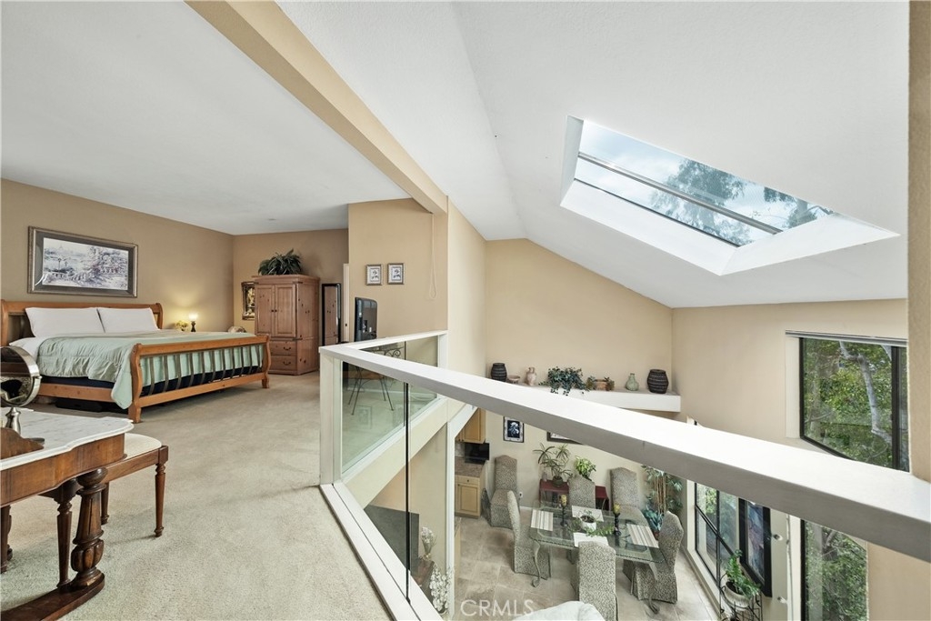 This 2-story, two-bedroom, two-bathroom loft home offers approximately 1,440 square feet of living space with a spacious and versatile layout. The property features abundant natural light throughout, highlighting the neutral color palette. The primary bedroom has ample space and natural lighting through the large windows and skylights, complemented by a spacious bathroom with beautiful tile work and ample counter space. There is extra space off the primary bedroom which can be used as a study, office or gym. The downstairs bedroom is en-suite as well, complete with a balcony overlooking the neighborhood. The open-concept living area provides a seamless flow, featuring vaulted ceilings that create a sense of airiness. The kitchen is outfitted with granite countertops and a neutral aesthetic, offering ample counter space for meal preparation. Situated with scenic outdoor views, this property provides a tranquil and serene living environment. Residents can enjoy access to two resort style pools, a spa, a sauna and a gym, as well as a bonus area that adds to the overall functionality and flexibility of the home. Side by side parking! Centrally located in Sherman Oaks, near yummy restaurants, great shopping, and major freeways.